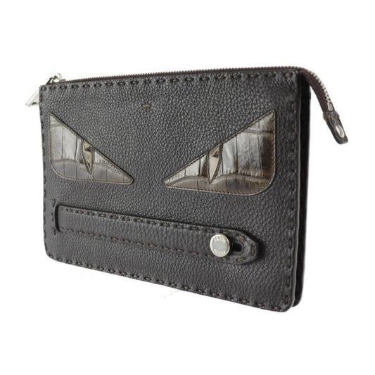 Fendi Monster Eye Clutch Brown Leather