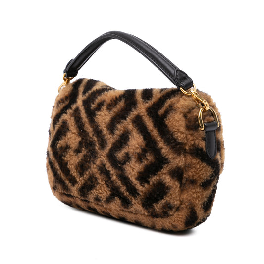Fendi Mini Zucca Shearling Chain Baguette Satchel