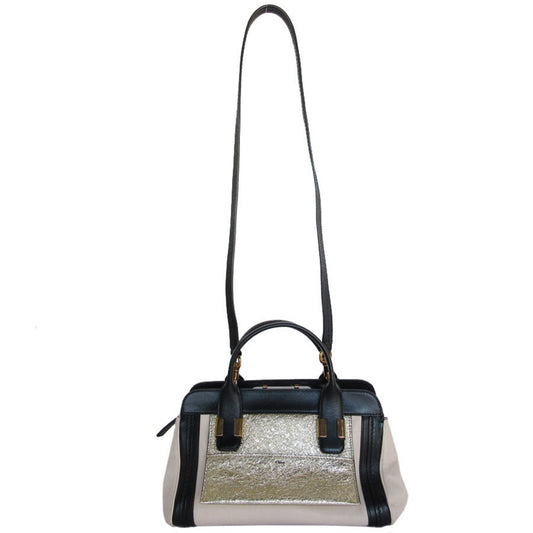 Chloe Elegant Leather Shoulder Bag with Gold-Tone Metal Fittings