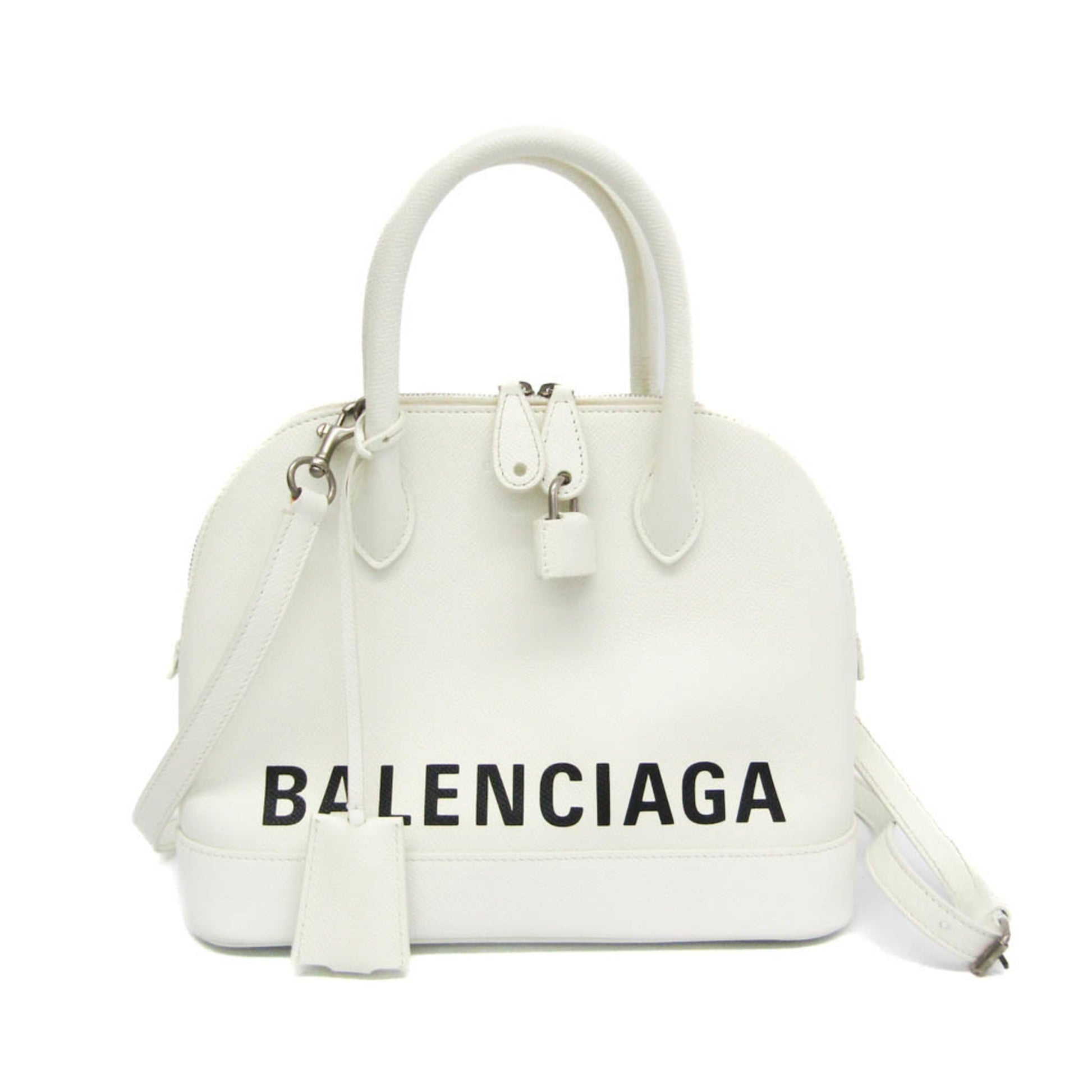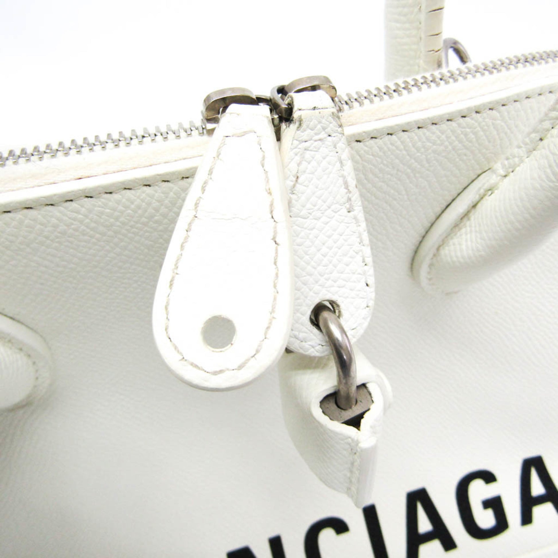 Brand: Balenciaga | Material: LEATHER | Color: WHITE | Dimensions: Length 12cm x Height 21cm x Width 27cm | This item is 100% authentic and has been thoroughly inspected. Perfect for fashion enthusiasts who appreciate luxury and quality.