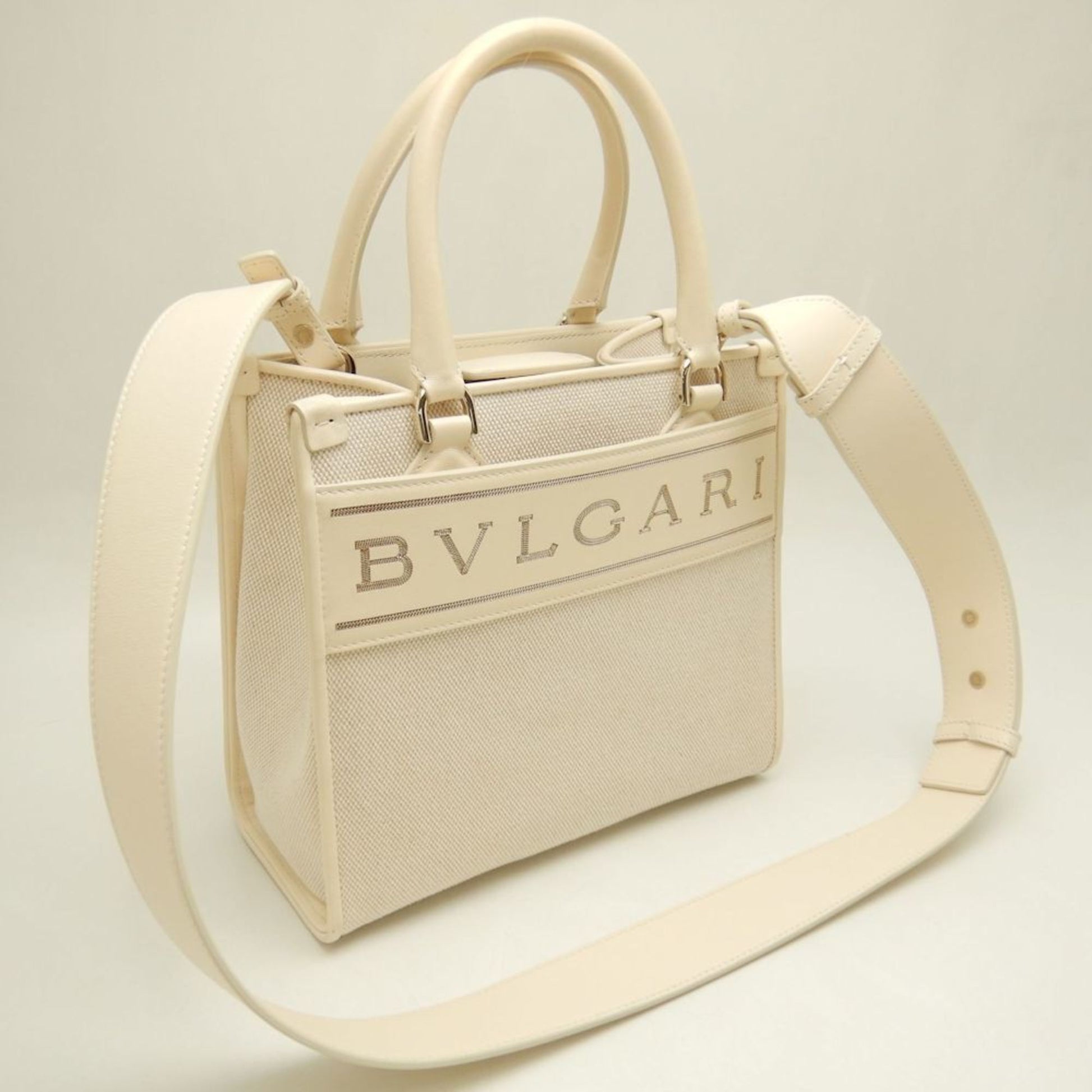 Bvlgari Canvas White Tote Bags