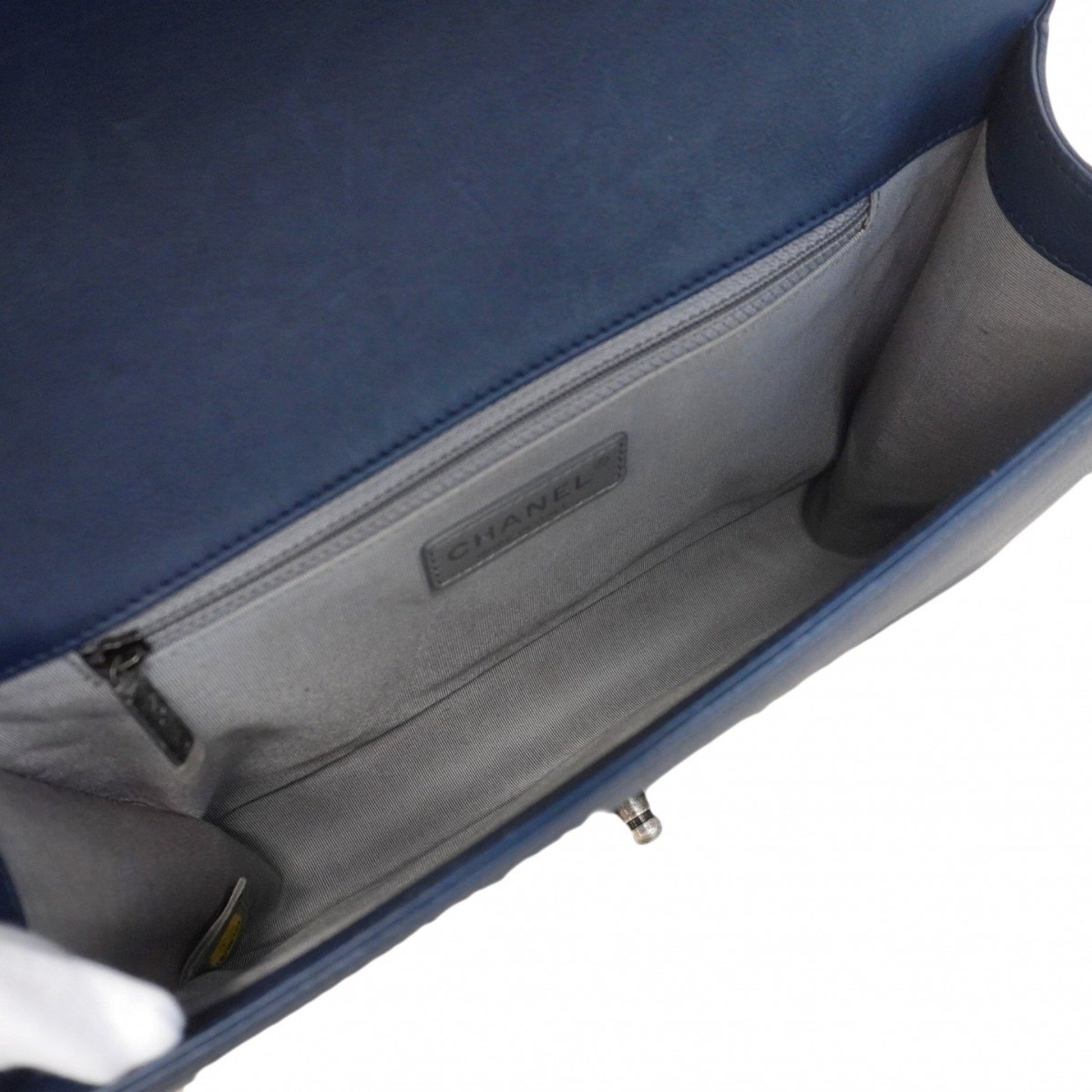 Brand: CHANEL | Model: Boy | Material: LEATHER | Color: BLUE | Condition: VERY GOOD | Dimensions: Length 18 cm × Width 27 cm × Height 8 cm | This item is 100% authentic and has been thoroughly inspected. Perfect for fashion enthusiasts who appreciate luxury and quality.