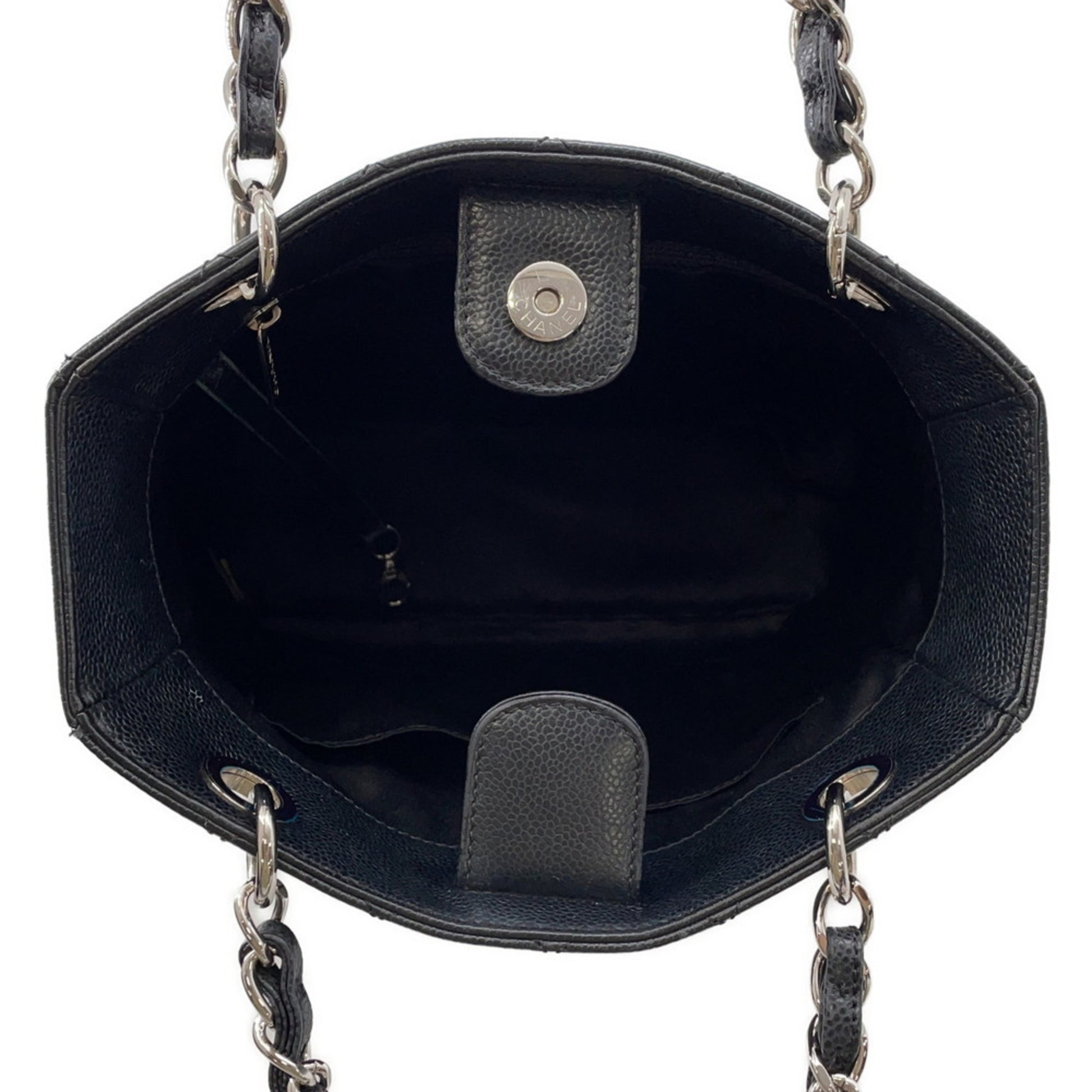 Brand: Chanel | Material: LEATHER | Color: BLACK | Dimensions: Length 8.5cm x Height 24cm x Width 24.5cm | This item is 100% authentic and has been thoroughly inspected. Perfect for fashion enthusiasts who appreciate luxury and quality.