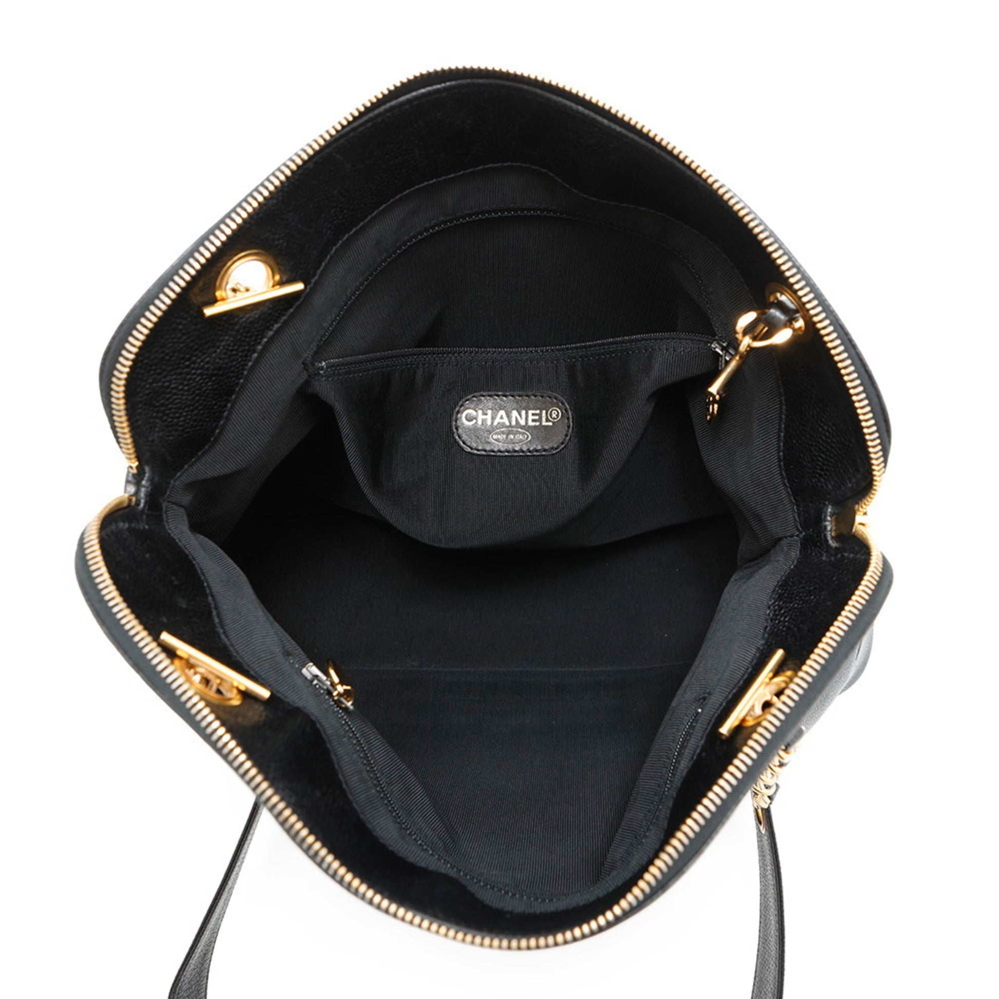 Brand: Chanel | Material: LEATHER | Color: BLACK | Dimensions: Length 9cm x Height 27cm x Width 35cm | This item is 100% authentic and has been thoroughly inspected. Perfect for fashion enthusiasts who appreciate luxury and quality.