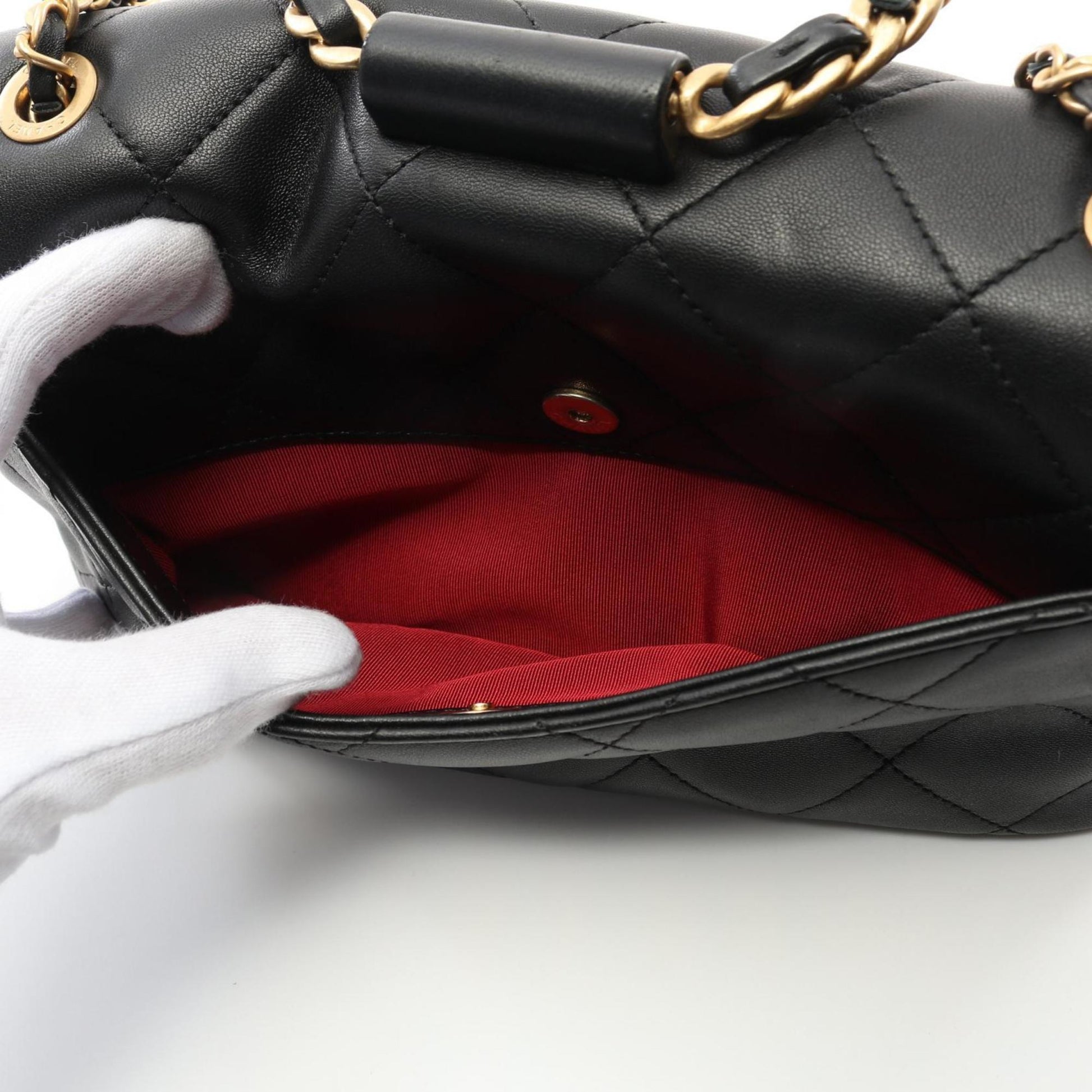 Brand: Chanel | Material: LEATHER | Color: BLACK | Dimensions: Length 5cm x Height 17cm x Width 24cm | This item is 100% authentic and has been thoroughly inspected. Perfect for fashion enthusiasts who appreciate luxury and quality.