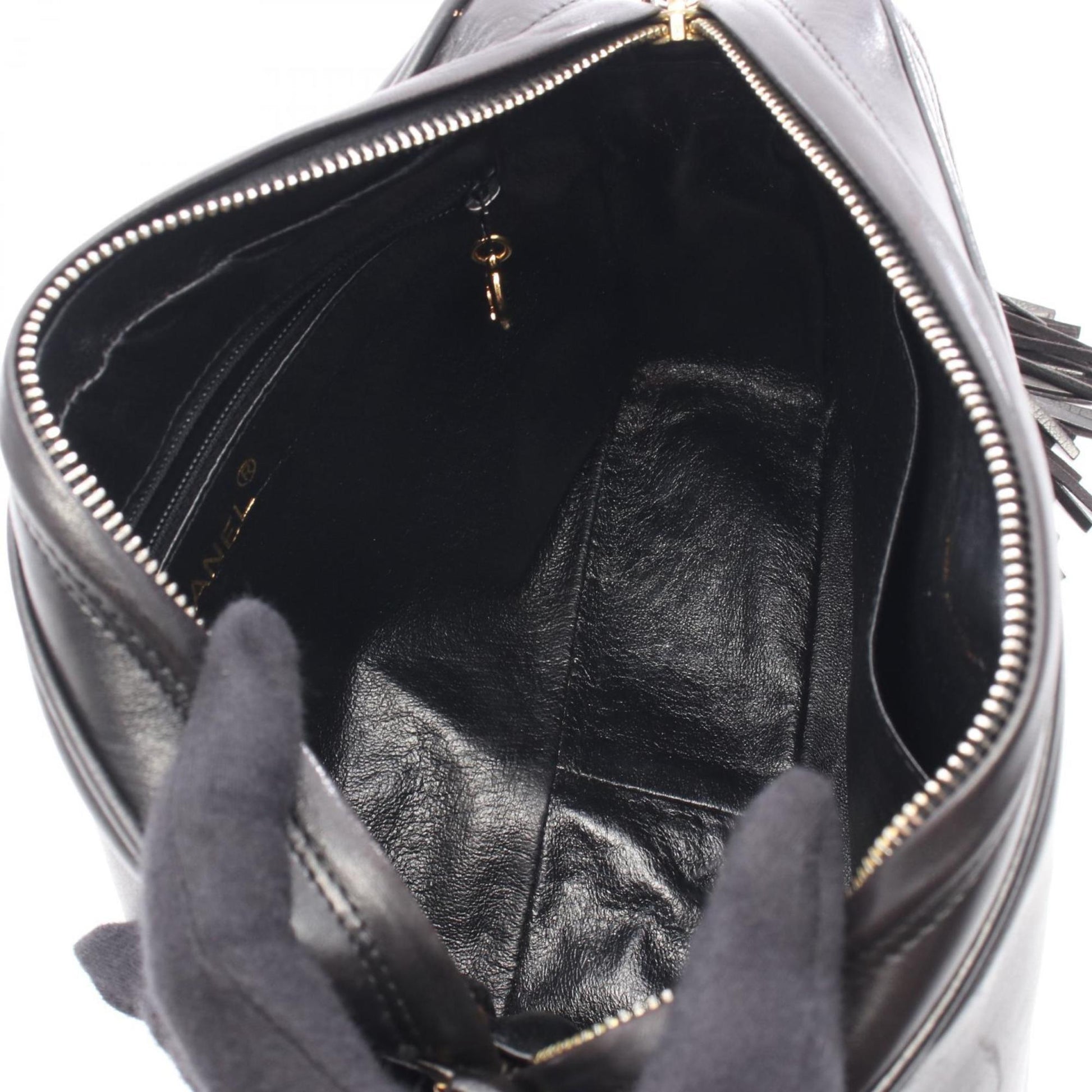 Brand: Chanel | Material: LEATHER | Color: BLACK | Dimensions: Length 6cm x Height 17cm x Width 22.5cm | This item is 100% authentic and has been thoroughly inspected. Perfect for fashion enthusiasts who appreciate luxury and quality.