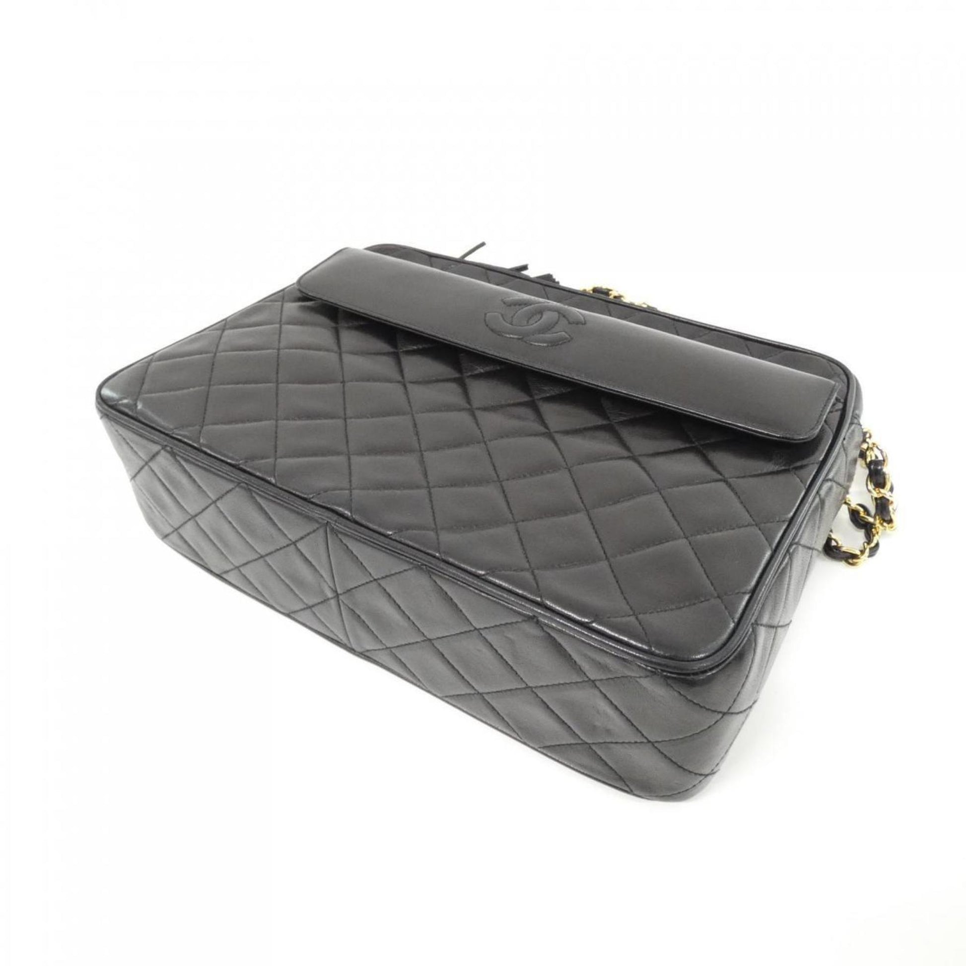Brand: Chanel | Material: LEATHER | Color: BLACK | Dimensions: Length 7.5cm x Height 20cm x Width 27cm | This item is 100% authentic and has been thoroughly inspected. Perfect for fashion enthusiasts who appreciate luxury and quality.