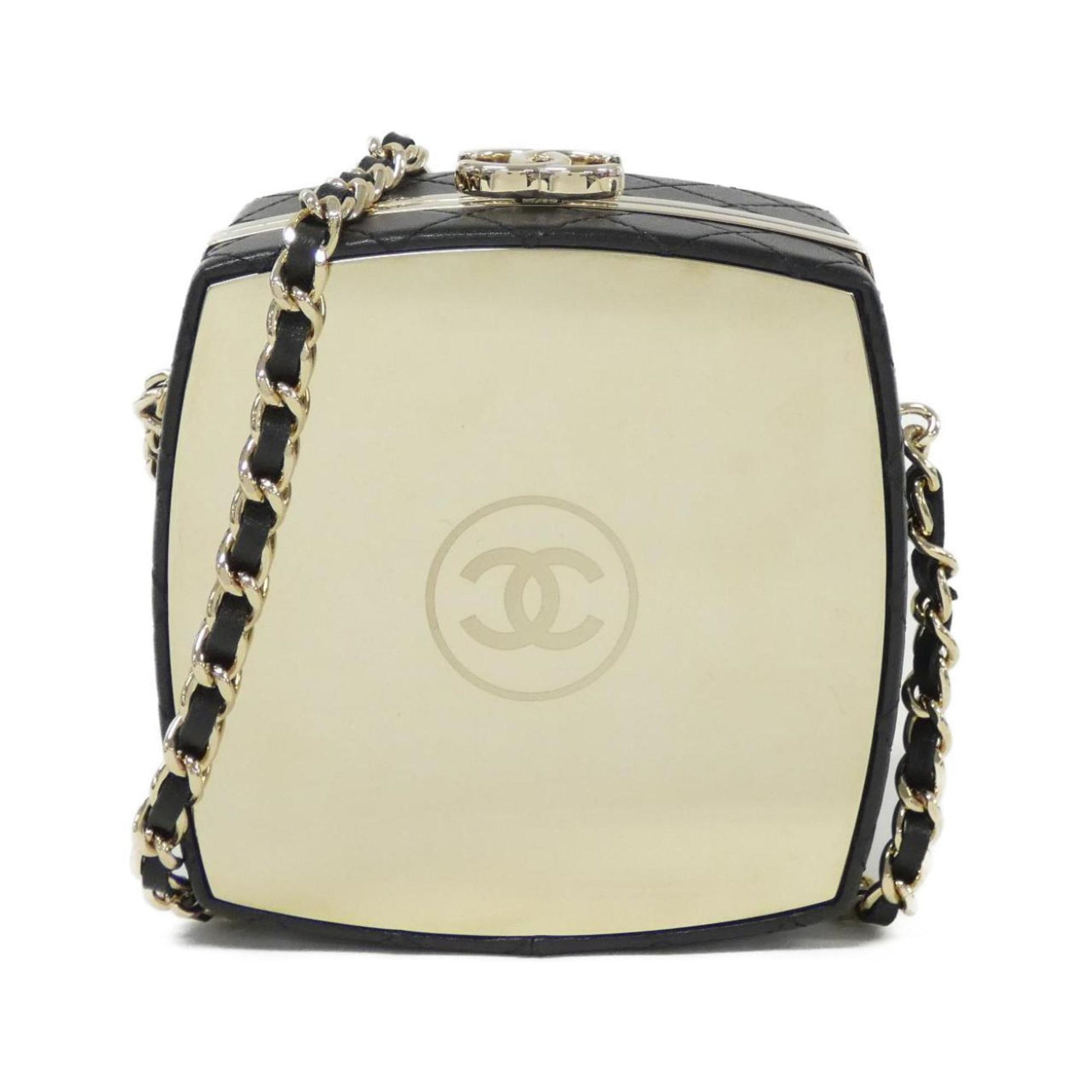Brand: Chanel | Material: LEATHER | Color: BLACK | Dimensions: Length 5.5cm x Height 9.5cm x Width 9.5cm | This item is 100% authentic and has been thoroughly inspected. Perfect for fashion enthusiasts who appreciate luxury and quality.