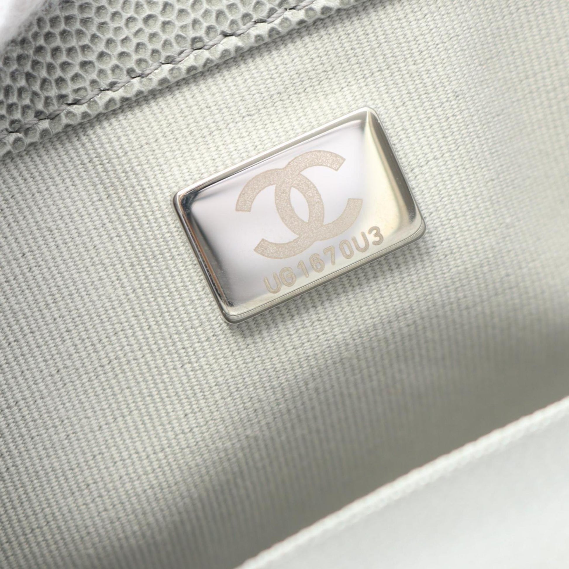 Brand: Chanel | Material: LEATHER | Color: GRAY | Dimensions: Length 5cm x Height 12cm x Width 20cm | This item is 100% authentic and has been thoroughly inspected. Perfect for fashion enthusiasts who appreciate luxury and quality.