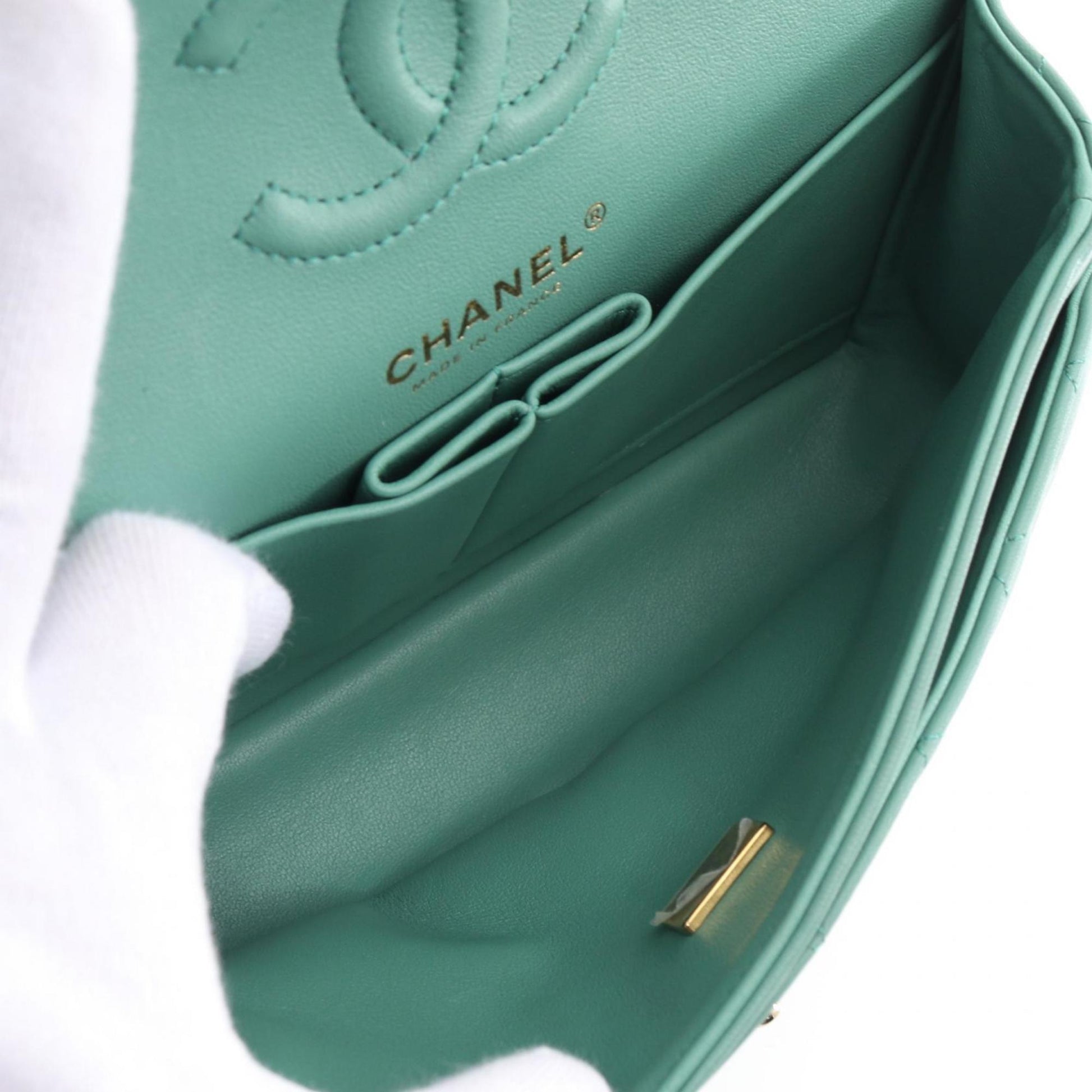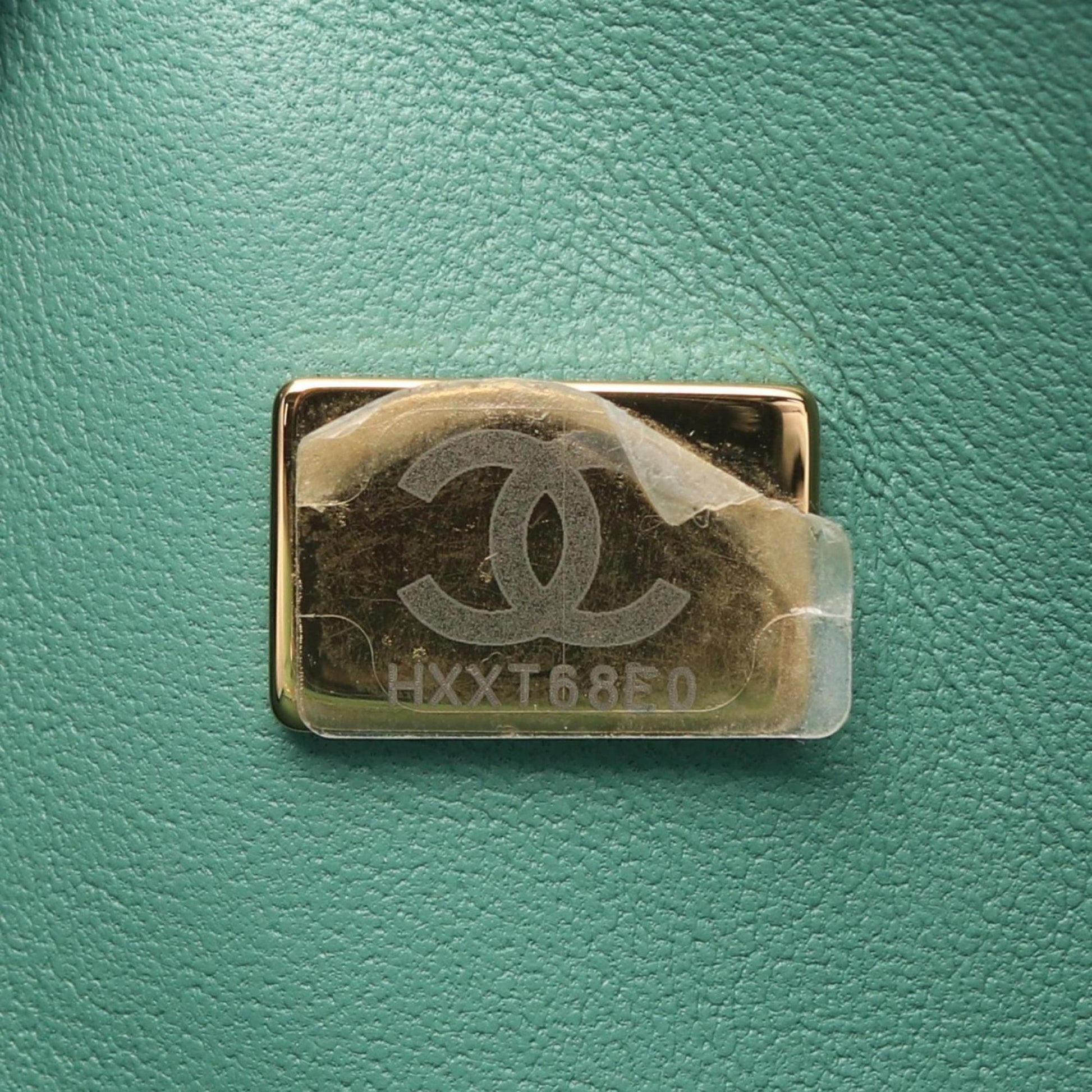 Brand: Chanel | Material: LEATHER | Color: GREEN | Dimensions: Length 6.5cm x Height 16cm x Width 25cm | This item is 100% authentic and has been thoroughly inspected. Perfect for fashion enthusiasts who appreciate luxury and quality.