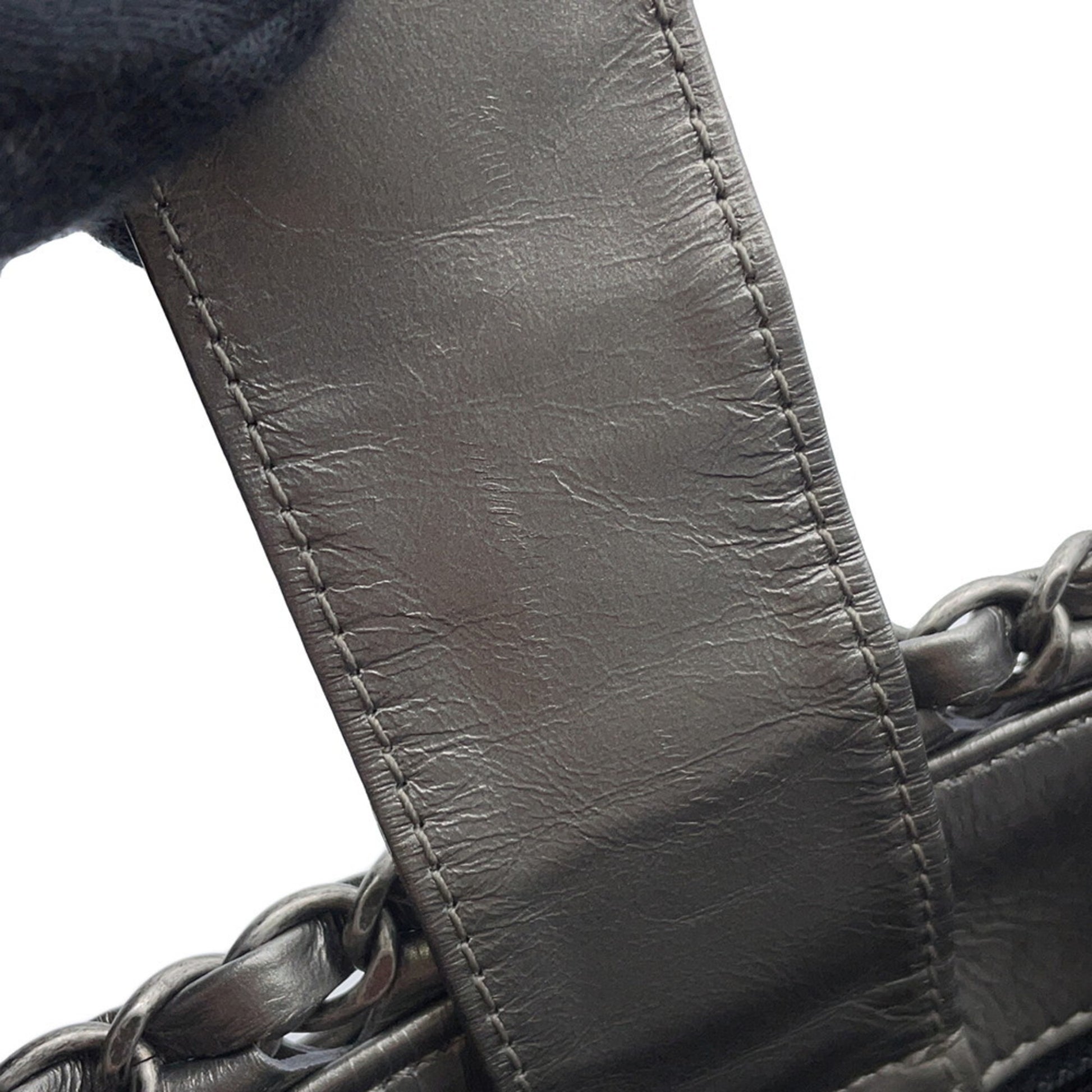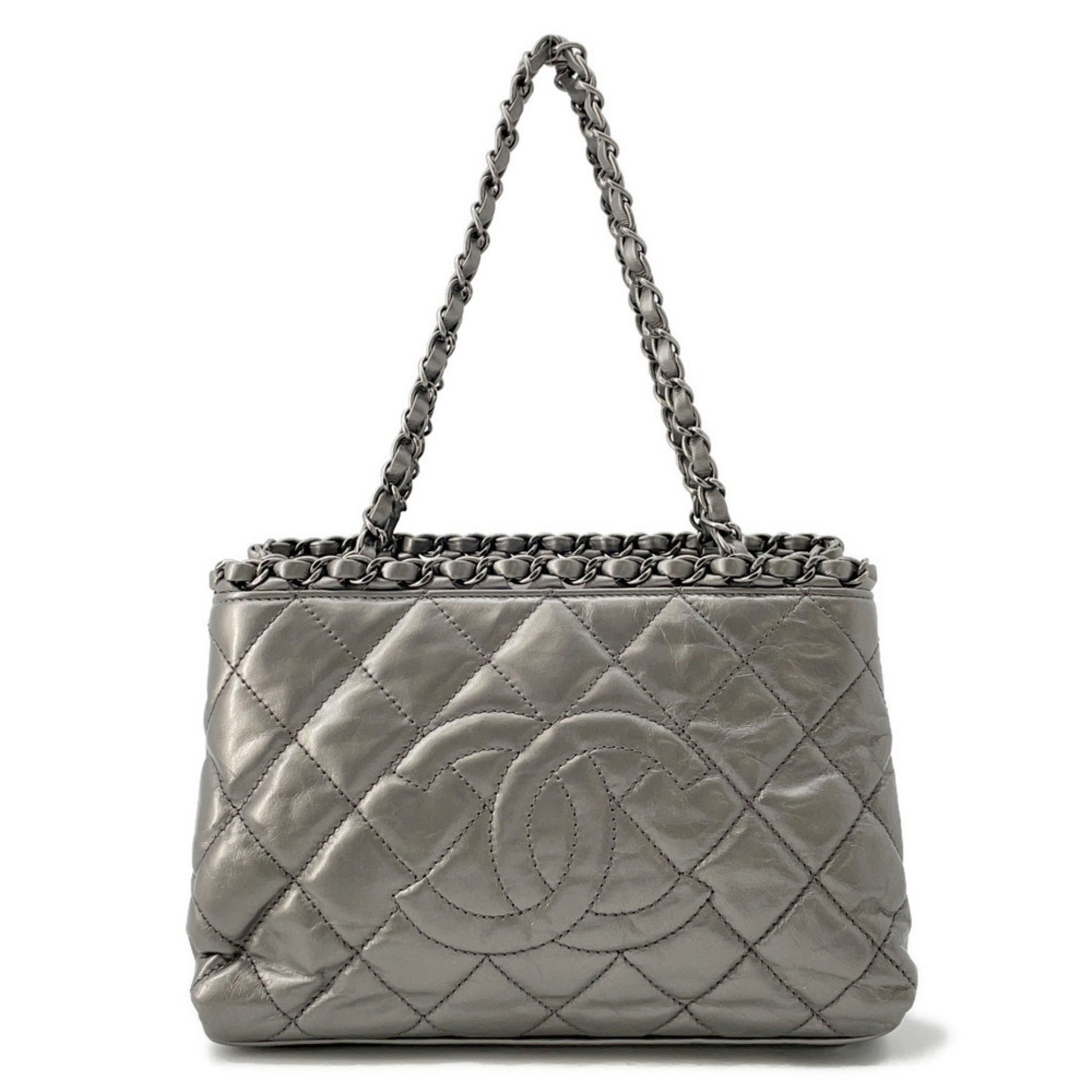 Brand: Chanel | Material: LEATHER | Color: SILVER | Dimensions: Length 13cm x Height 16cm x Width 24cm | This item is 100% authentic and has been thoroughly inspected. Perfect for fashion enthusiasts who appreciate luxury and quality.
