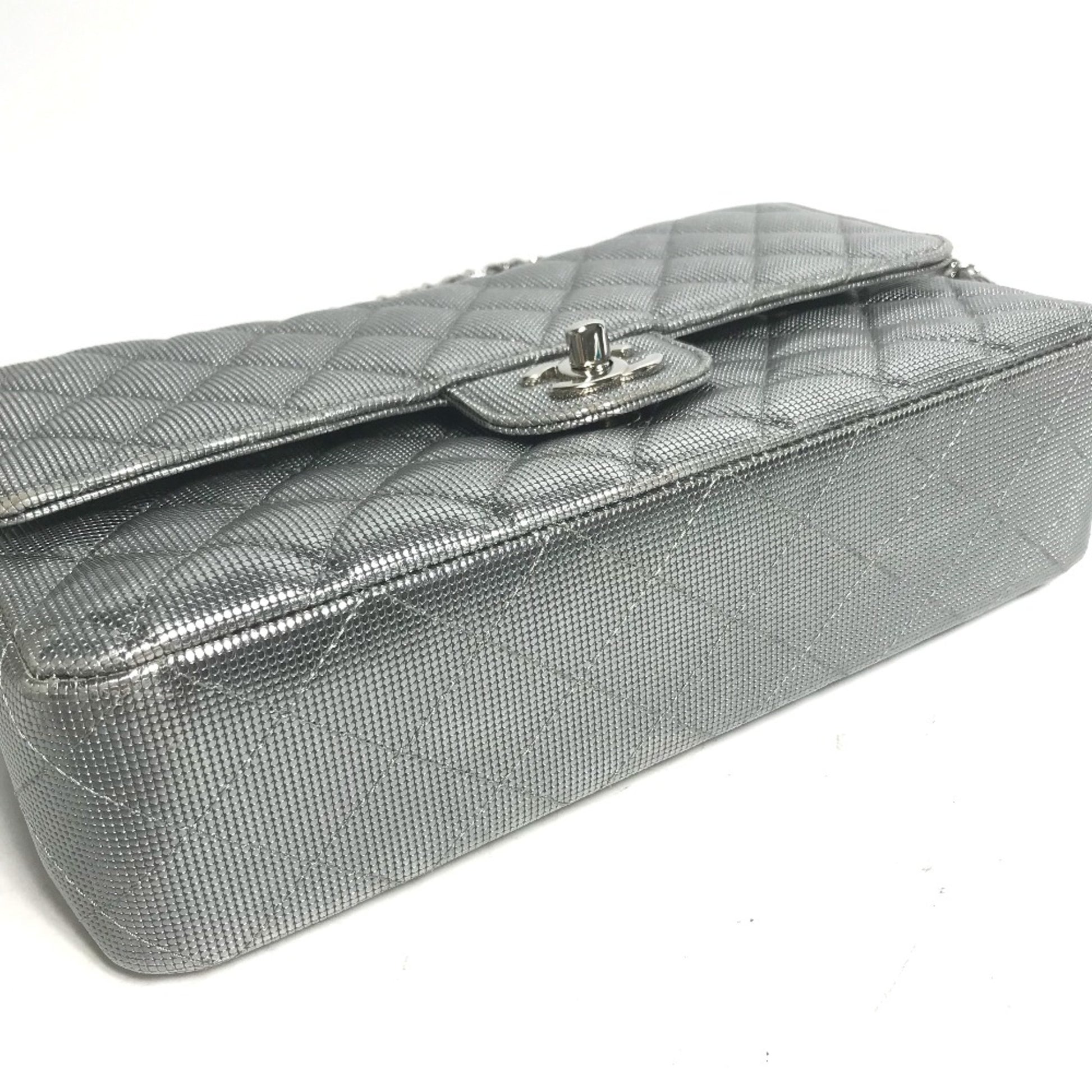 Brand: Chanel | Material: LEATHER | Color: SILVER | Dimensions: Length D6cm x Height W24.5cm x Width H15cm | This item is 100% authentic and has been thoroughly inspected. Perfect for fashion enthusiasts who appreciate luxury and quality.