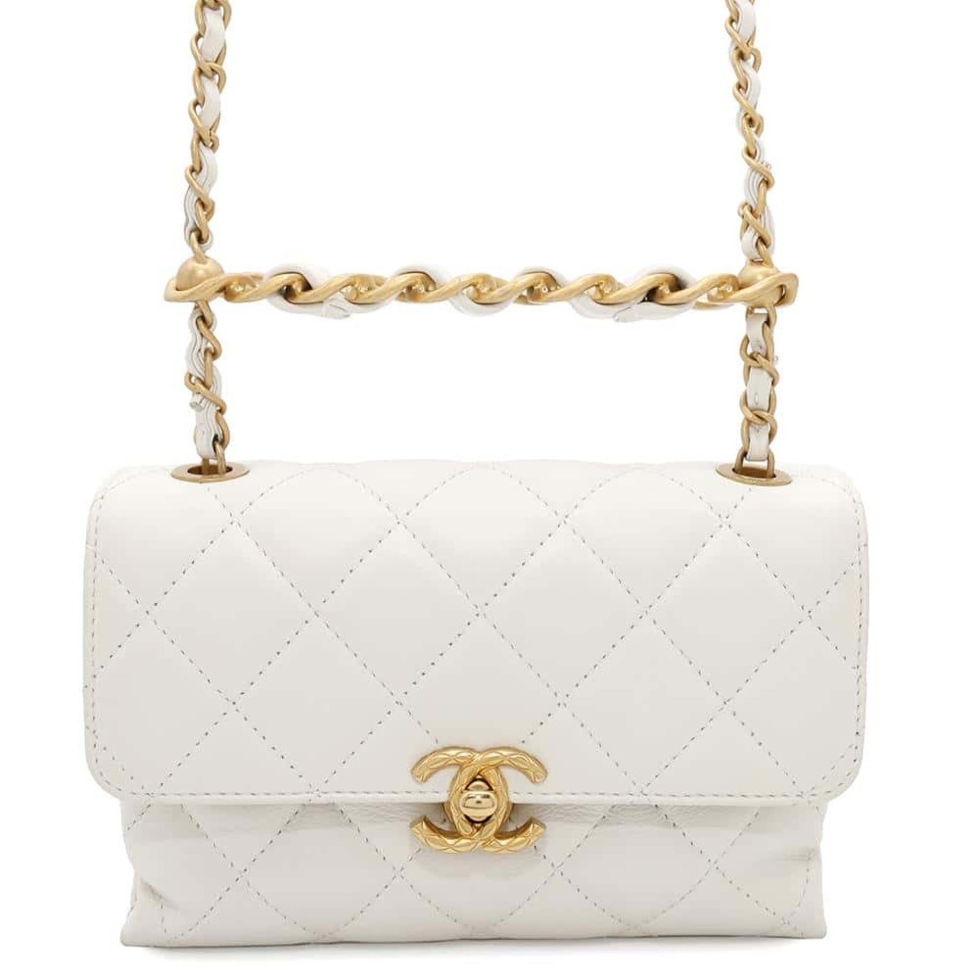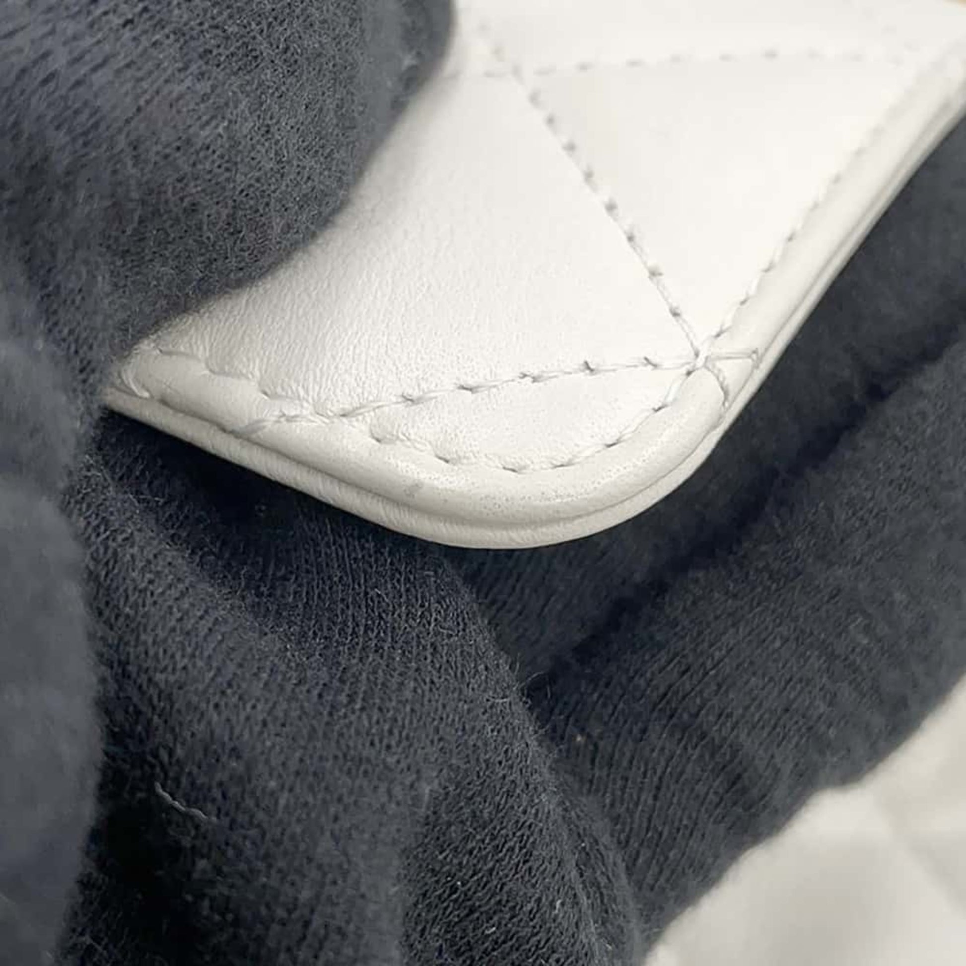 Brand: Chanel | Material: LEATHER | Color: WHITE | Dimensions: Length 5.5cm x Height 12cm x Width 18.5cm | This item is 100% authentic and has been thoroughly inspected. Perfect for fashion enthusiasts who appreciate luxury and quality.