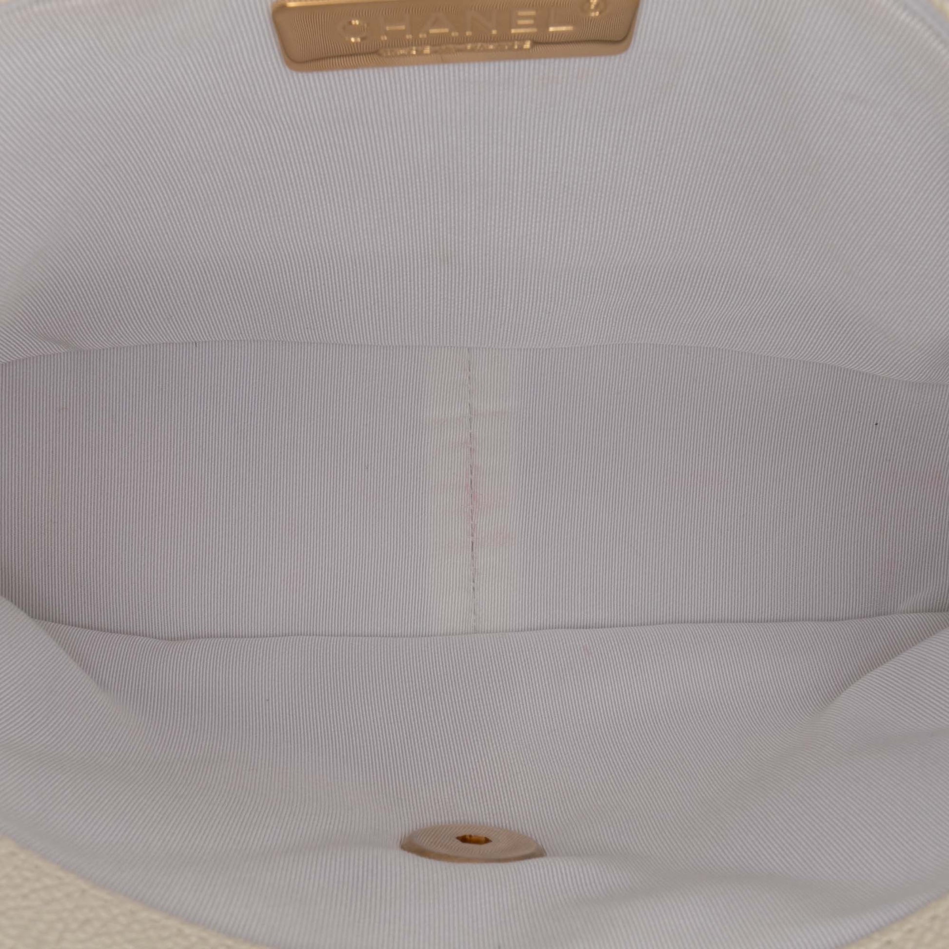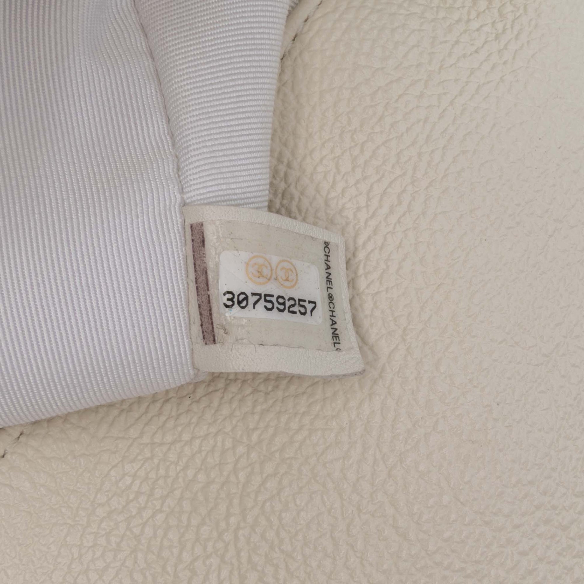 This 19 Flap bag features a quilted calf leather body with crochet stitching details, a curb chain handle, a woven leather chain shoulder strap with leather shoulder guard, a front flap with twist-lock closure, an exterior back slip pocket, and an interior zip pocket. Product Condition Details: Exterior Back Creased. Lock Scratched. Exterior Corners stained with Other. Exterior Handle Worn. Interior Pocket stained with Other. Interior Lining Creased. Interior Lining stained with Transfer Of Color, Other. Exterior Pocket stained with Other. Practical Attachment Scratched. Zipper Scratched. Inclusions: Dust Bag, Authenticity Card. Country of Origin: FRANCE. Serial Number: 30759257