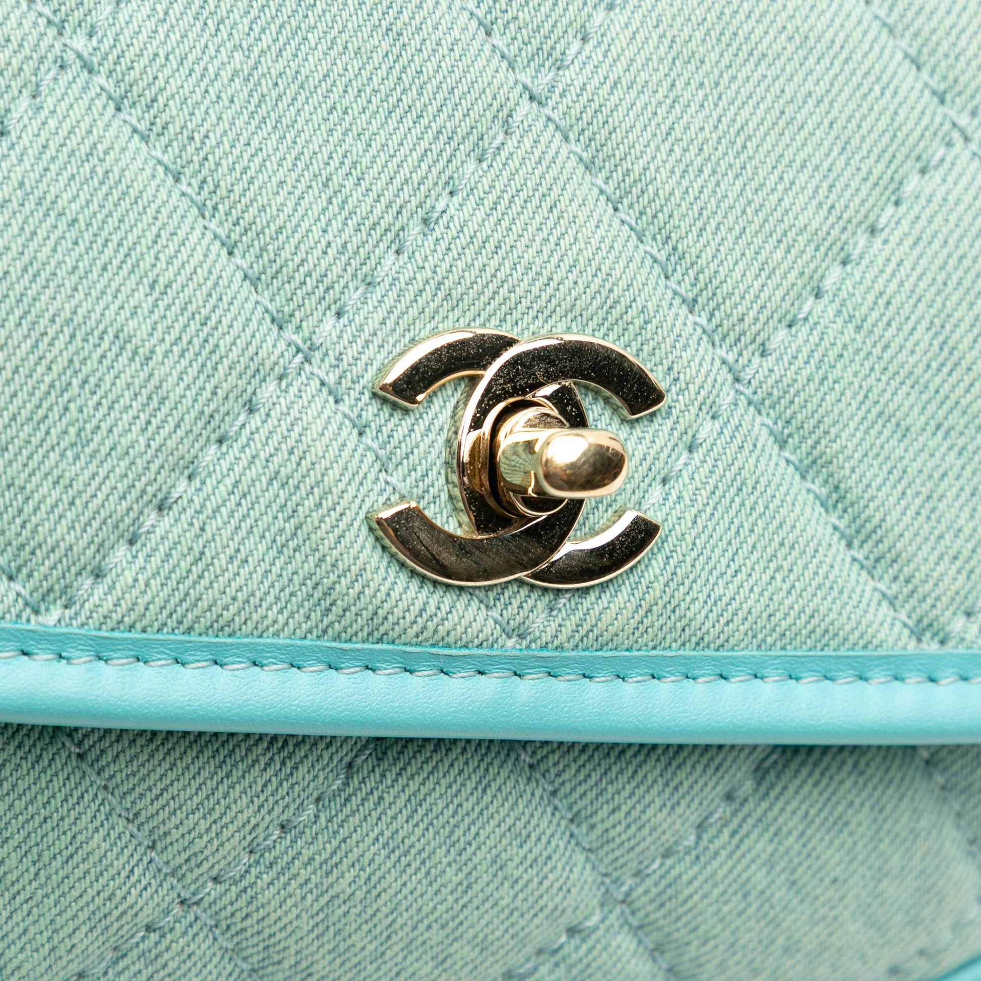 This crossbody features a quilted denim body with leather trim, a denim woven chain strap with leather guard, a front flap with CC twist-lock closure, an exterior back slip pocket, and an under flap slip pocket. Product Condition Details: Exterior Back Worn. Exterior Back stained with Other. Exterior Bottom stained with Other. Lock Scratched. Exterior Corners stained with Other. Exterior Front stained with Other. Exterior Handle Creased. Exterior Handle stained with Other. Interior Pocket stained with Other. Interior Lining stained with Other. Practical Attachment Scratched. Inclusions: None, No longer comes with original accessories. Country of Origin: ITALY. Serial Number: 31424824