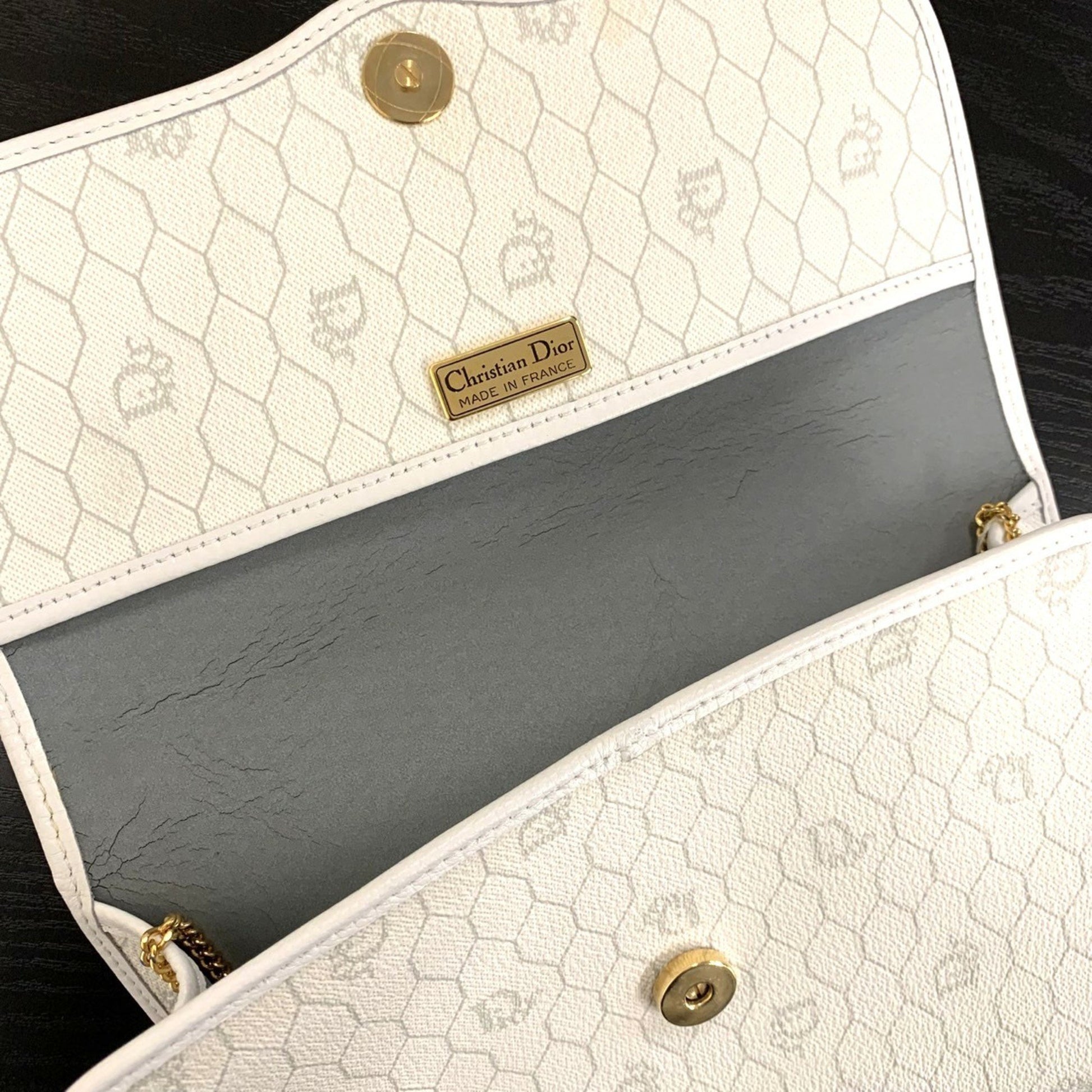 Brand: DIOR | Model: Honeycomb | Material: FABRIC | Color: WHITE | Condition: VERY GOOD | Dimensions: Length 16 cm × Width 23 cm × Height 4 cm | This item is 100% authentic and has been thoroughly inspected. Perfect for fashion enthusiasts who appreciate luxury and quality.