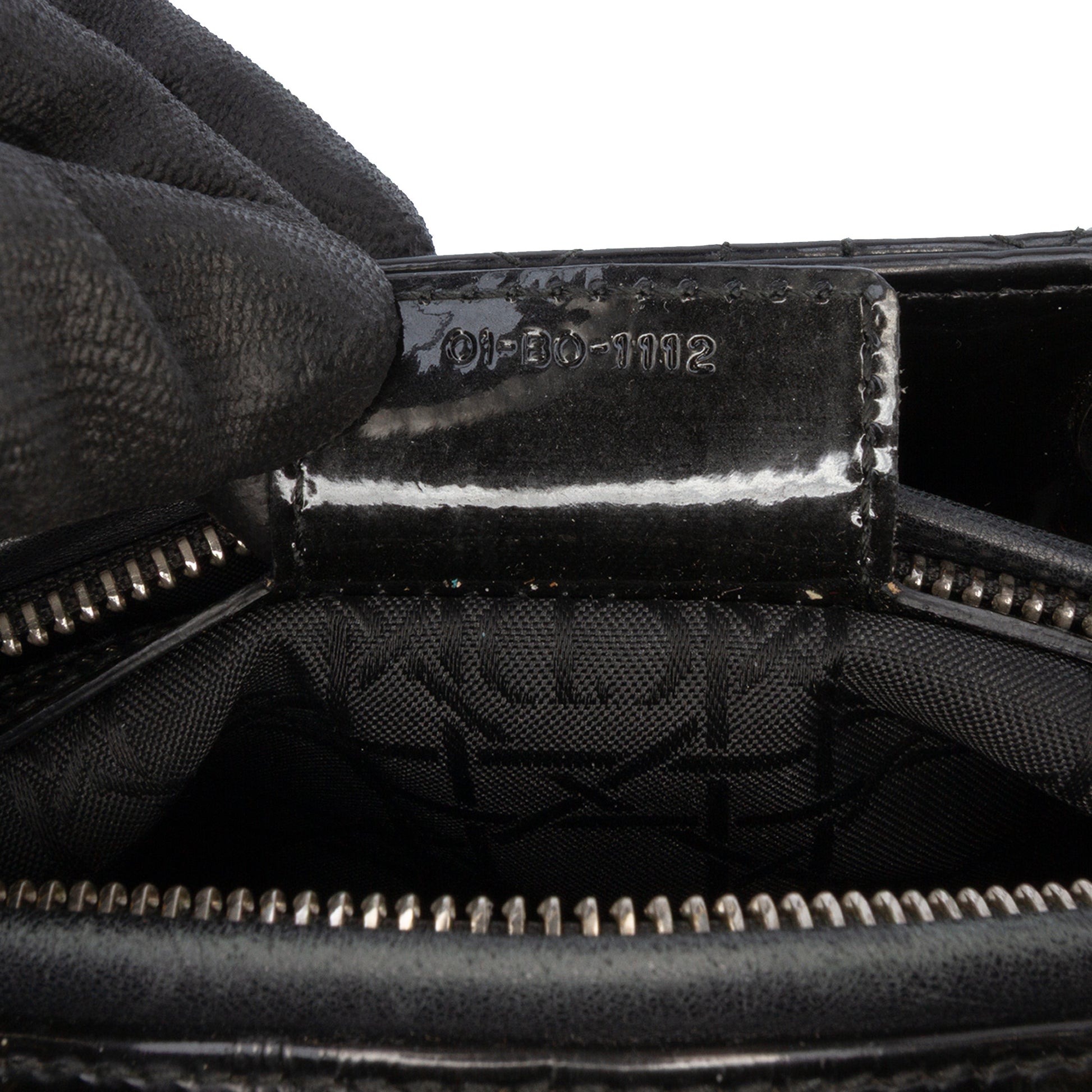 The Lady Dior features a quilted patent leather body, flat leather top handles, a detachable flat leather strap, a top zip closure, and an interior zip pocket. Product Condition Details: Exterior Back Scratched. Exterior Back stained with Other. Exterior Bottom Worn. Exterior Bottom stained with Other. Exterior Corners Worn. Embellishment Scratched. Exterior Front Scratched, Worn. Exterior Front stained with Other. Exterior Handle Creased, Cut Stitching, Scratched, Worn. Interior Lining Cut Stitching. Practical Attachment Scratched. Exterior Side Creased, Scratched. Exterior Side stained with Other. Exterior Top Creased, Loose Stitching, Worn. Zipper Scratched. Inclusions: Shoulder Strap, No longer comes with original accessories. Country of Origin: ITALY. Serial Number: 01-BO-1112