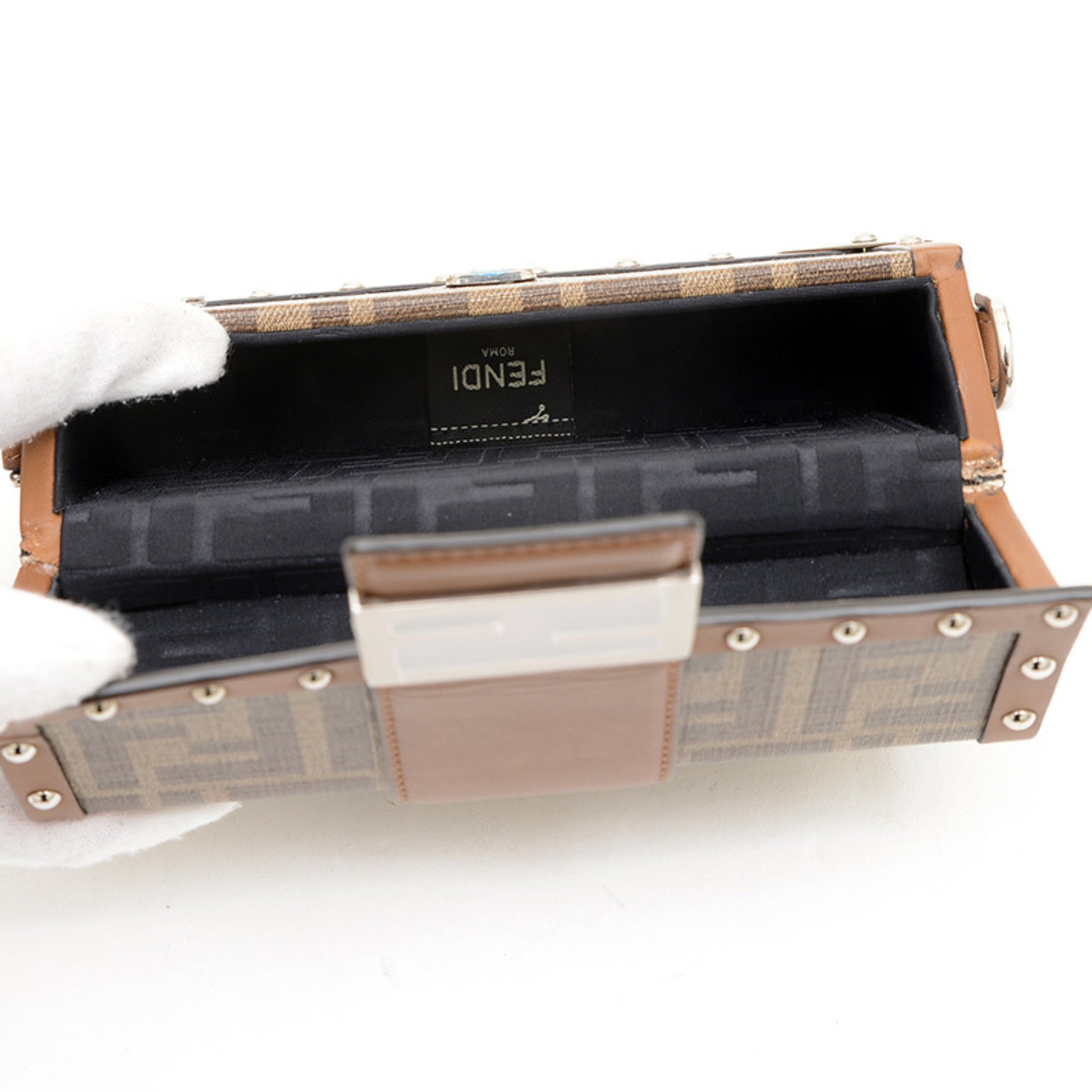 Brand: Fendi | Material: FABRIC | Color: BROWN | Dimensions: Length 4cm x Height 11cm x Width 18cm | This item is 100% authentic and has been thoroughly inspected. Perfect for fashion enthusiasts who appreciate luxury and quality.