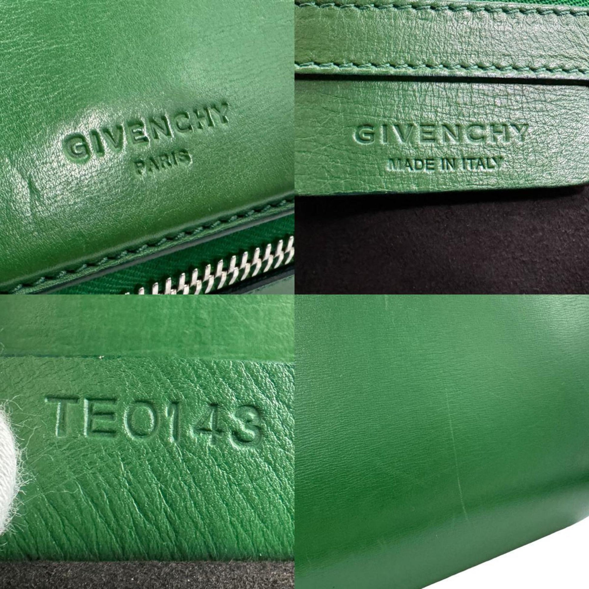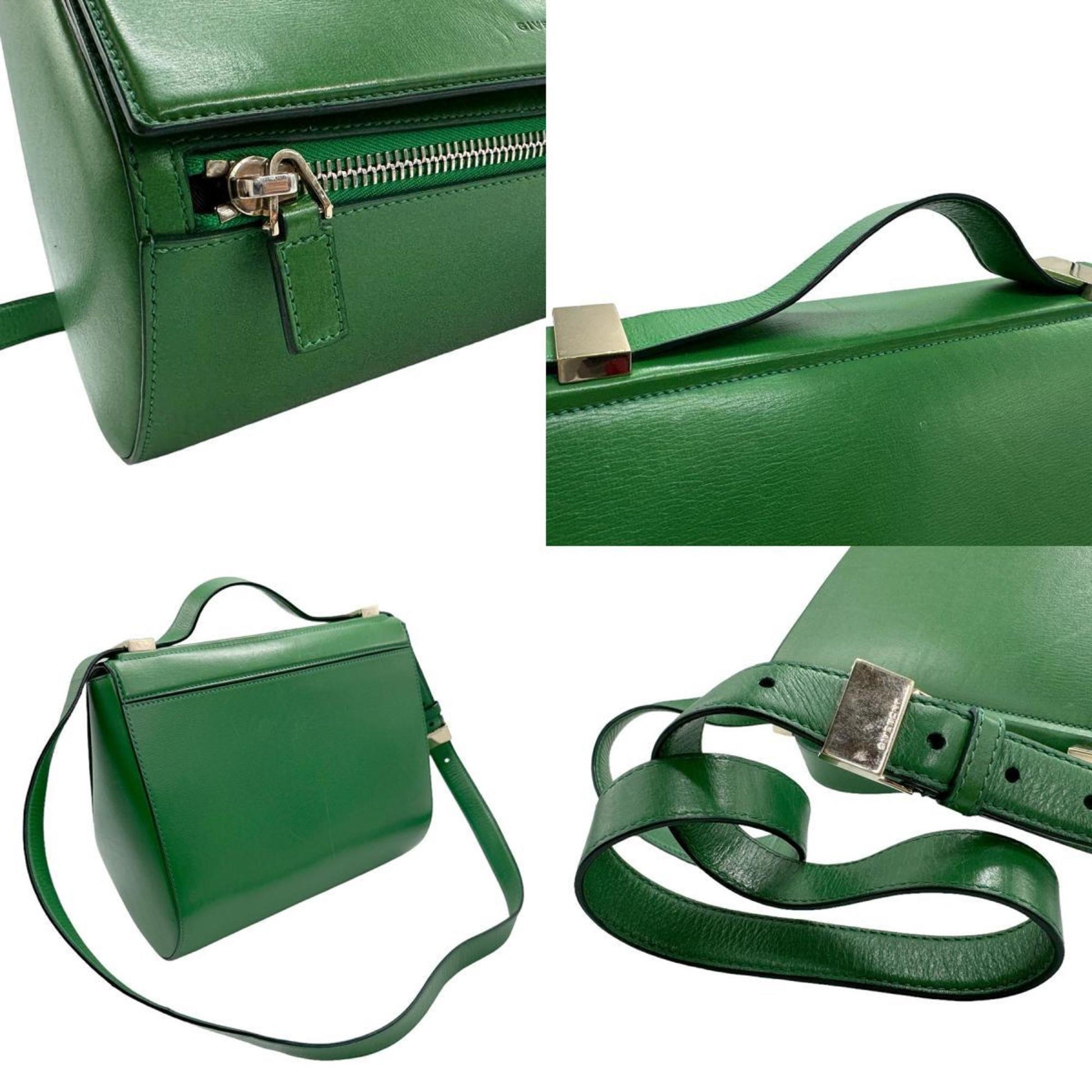 Brand: GIVENCHY | Model: Pandora Box | Material: LEATHER | Color: GREEN | Condition: VERY GOOD | Dimensions: Length 26.5 cm × Width 22 cm × Height 14 cm | This item is 100% authentic and has been thoroughly inspected. Perfect for fashion enthusiasts who appreciate luxury and quality.