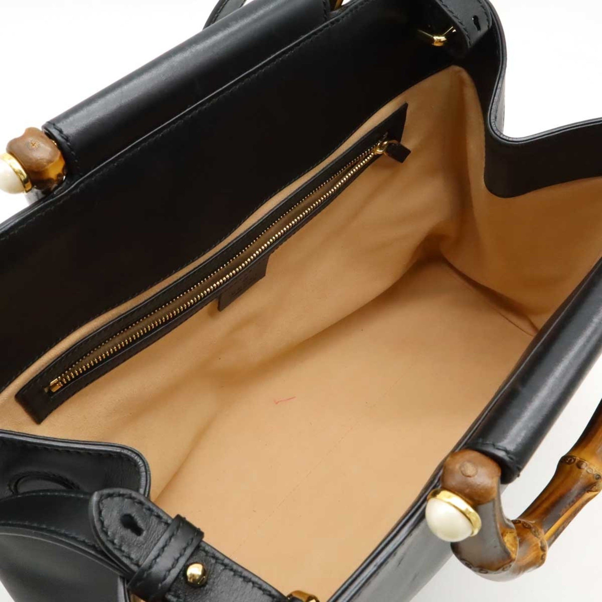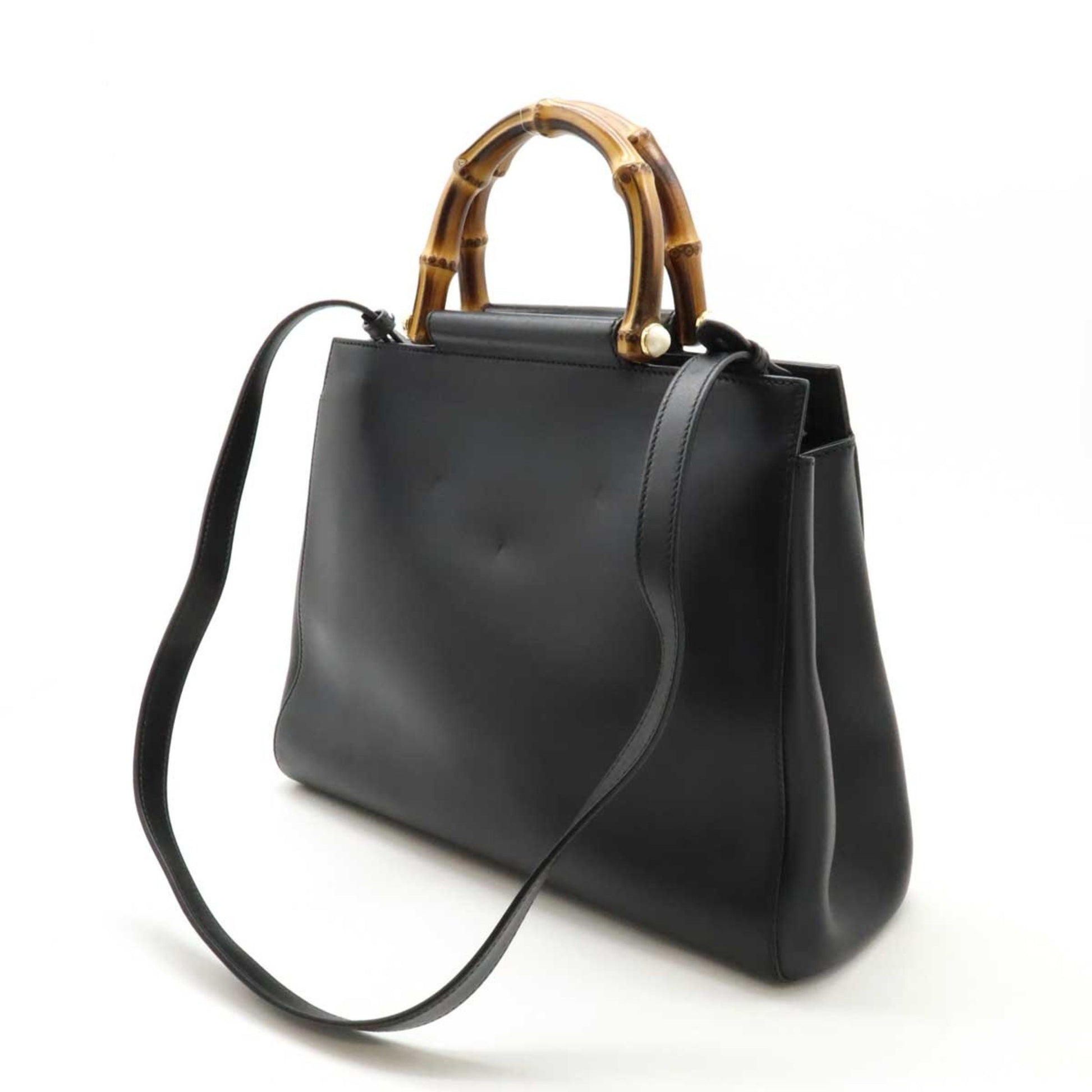 Brand: GUCCI | Model: Bamboo | Material: LEATHER | Color: BLACK | Condition: VERY GOOD | Dimensions: Length 34 cm × Width 26 cm × Height 11.5 cm | This item is 100% authentic and has been thoroughly inspected. Perfect for fashion enthusiasts who appreciate luxury and quality.