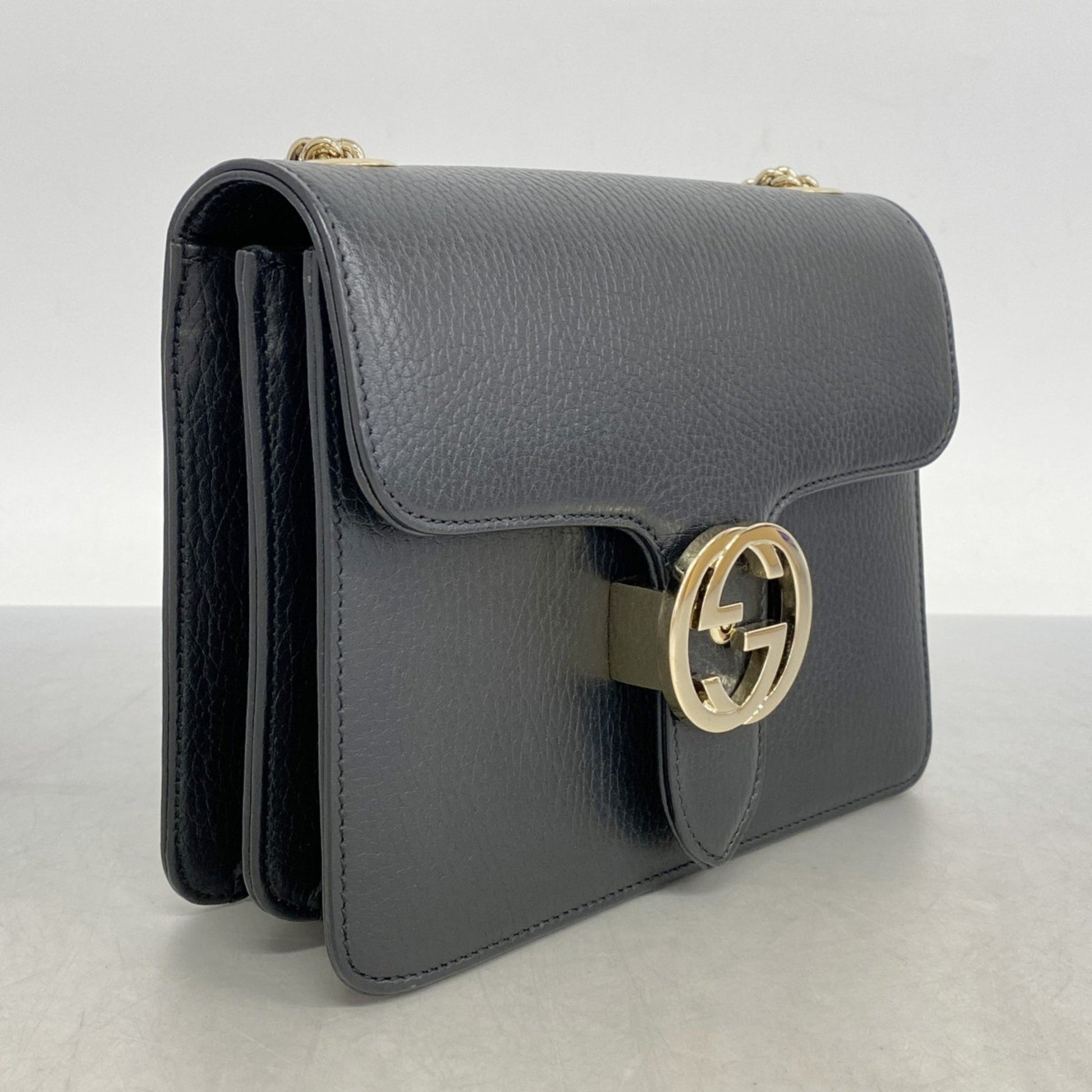 Brand: GUCCI | Model: Interlocking G | Material: LEATHER | Color: BLACK | Condition: VERY GOOD | Dimensions: Length 15 cm × Width 20 cm × Height 7 cm | This item is 100% authentic and has been thoroughly inspected. Perfect for fashion enthusiasts who appreciate luxury and quality.