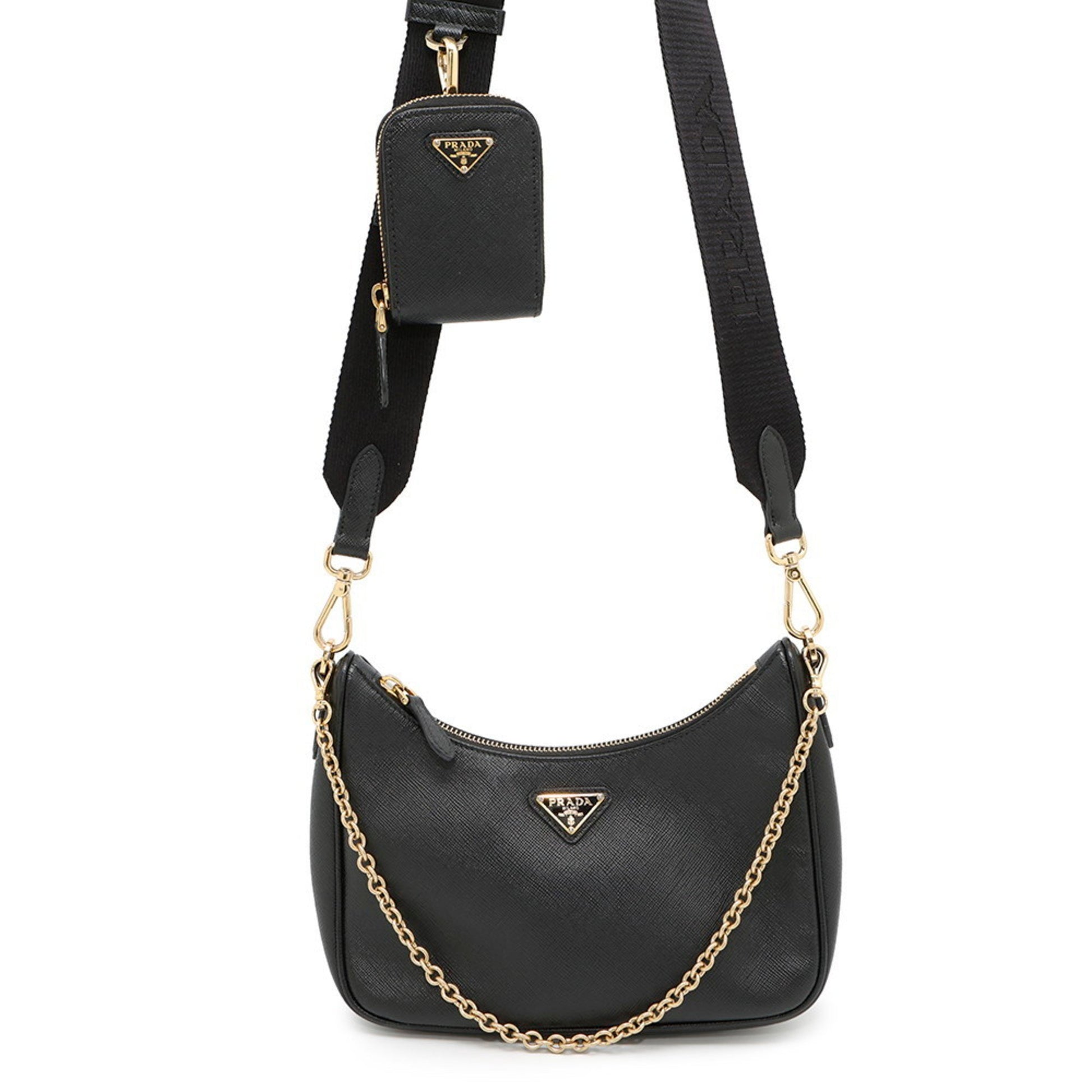 Brand: Prada | Material: FABRIC | Color: BLACK | Dimensions: Length 6.5cm x Height 12.5cm x Width 22.5cm | This item is 100% authentic and has been thoroughly inspected. Perfect for fashion enthusiasts who appreciate luxury and quality.