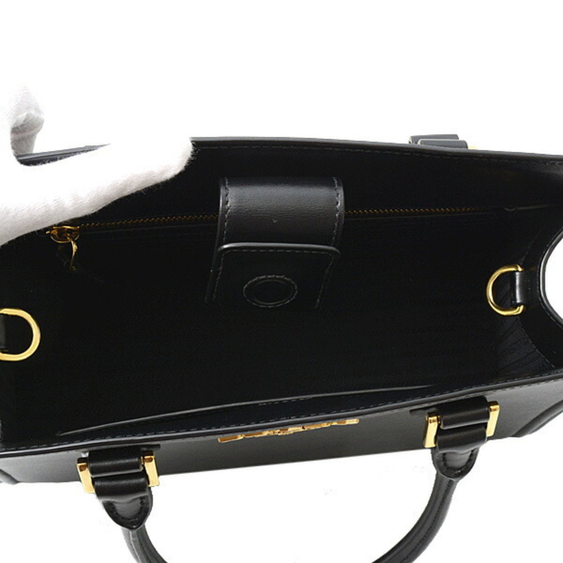 Brand: Prada | Material: LEATHER | Color: BLACK | Dimensions: Length 8.5cm x Height 24cm x Width 30.5cm | This item is 100% authentic and has been thoroughly inspected. Perfect for fashion enthusiasts who appreciate luxury and quality.