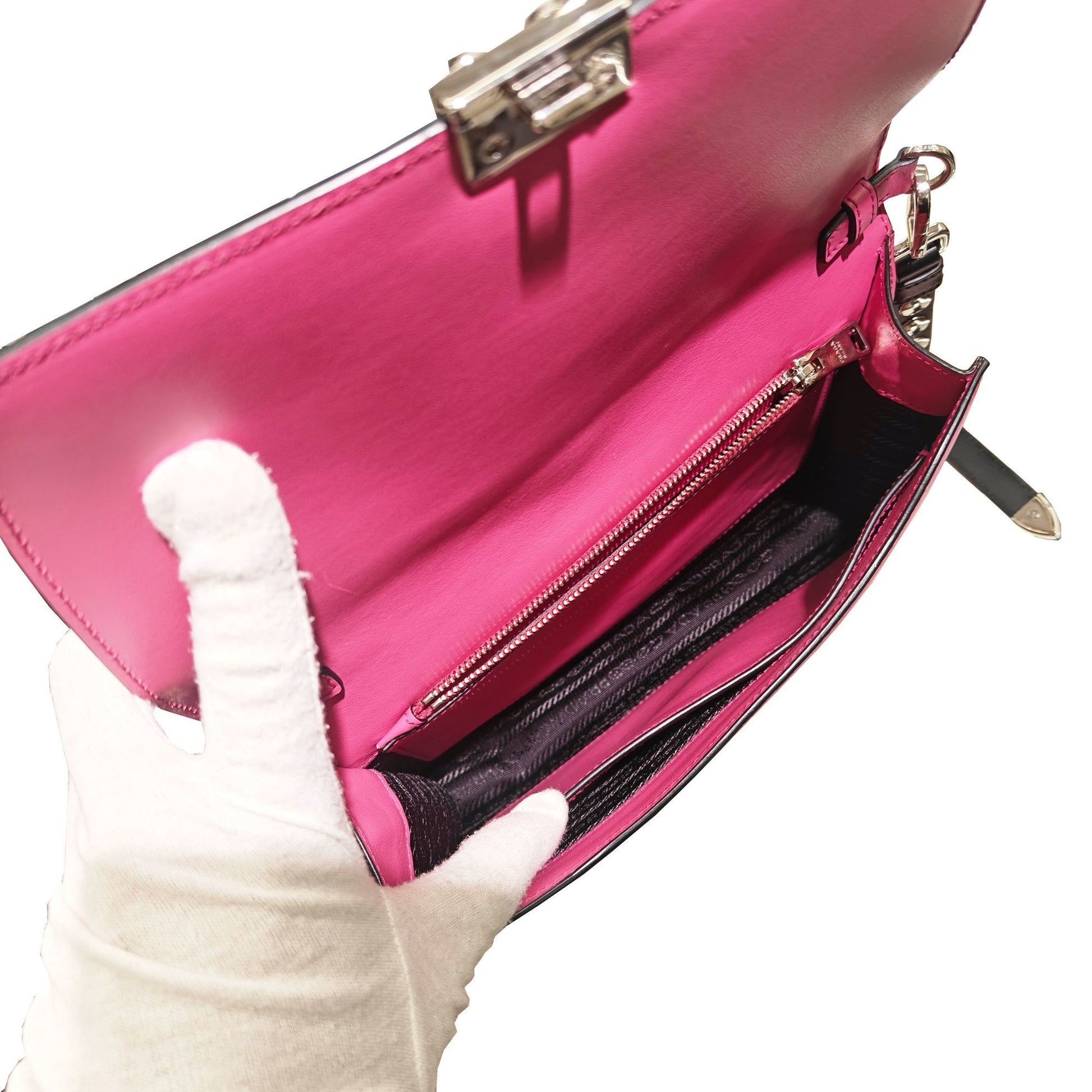 Brand: Prada | Material: LEATHER | Color: BLACK | Dimensions: Length 5.5cm x Height 17cm x Width 23.5cm | This item is 100% authentic and has been thoroughly inspected. Perfect for fashion enthusiasts who appreciate luxury and quality.