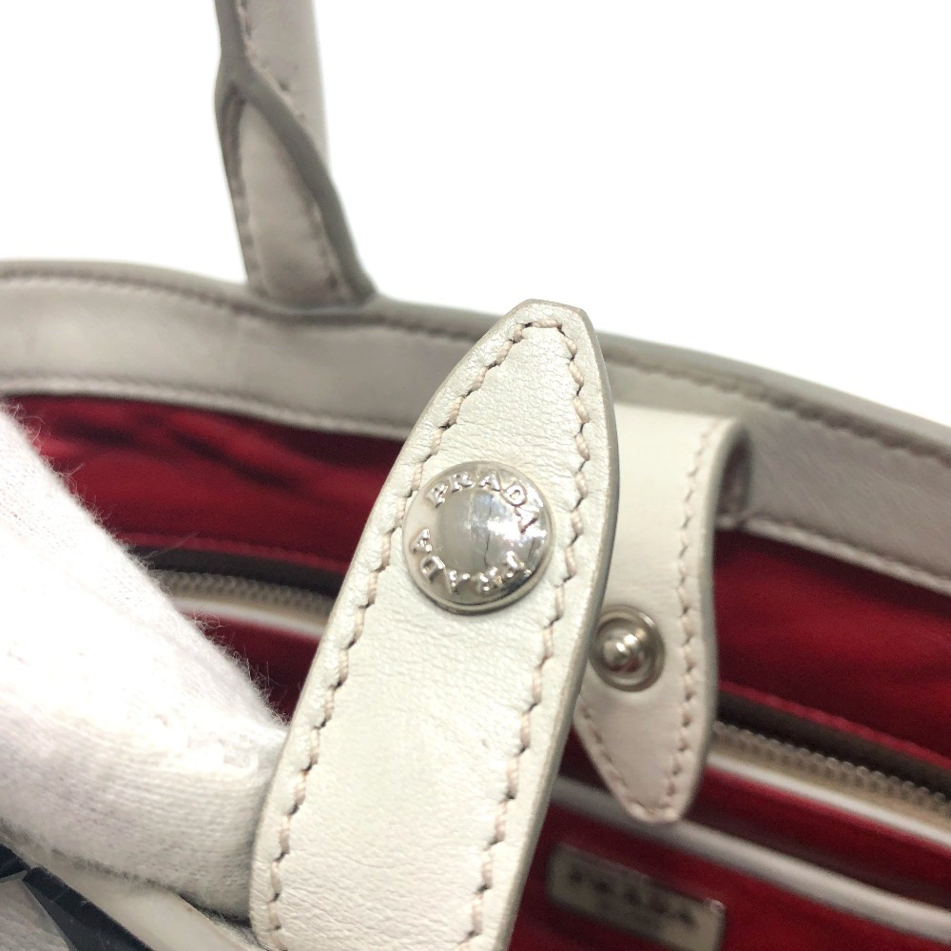 Brand: Prada | Material: LEATHER | Color: WHITE | Dimensions: Length 12.5cm x Height 18.5cm x Width 28cm | This item is 100% authentic and has been thoroughly inspected. Perfect for fashion enthusiasts who appreciate luxury and quality.