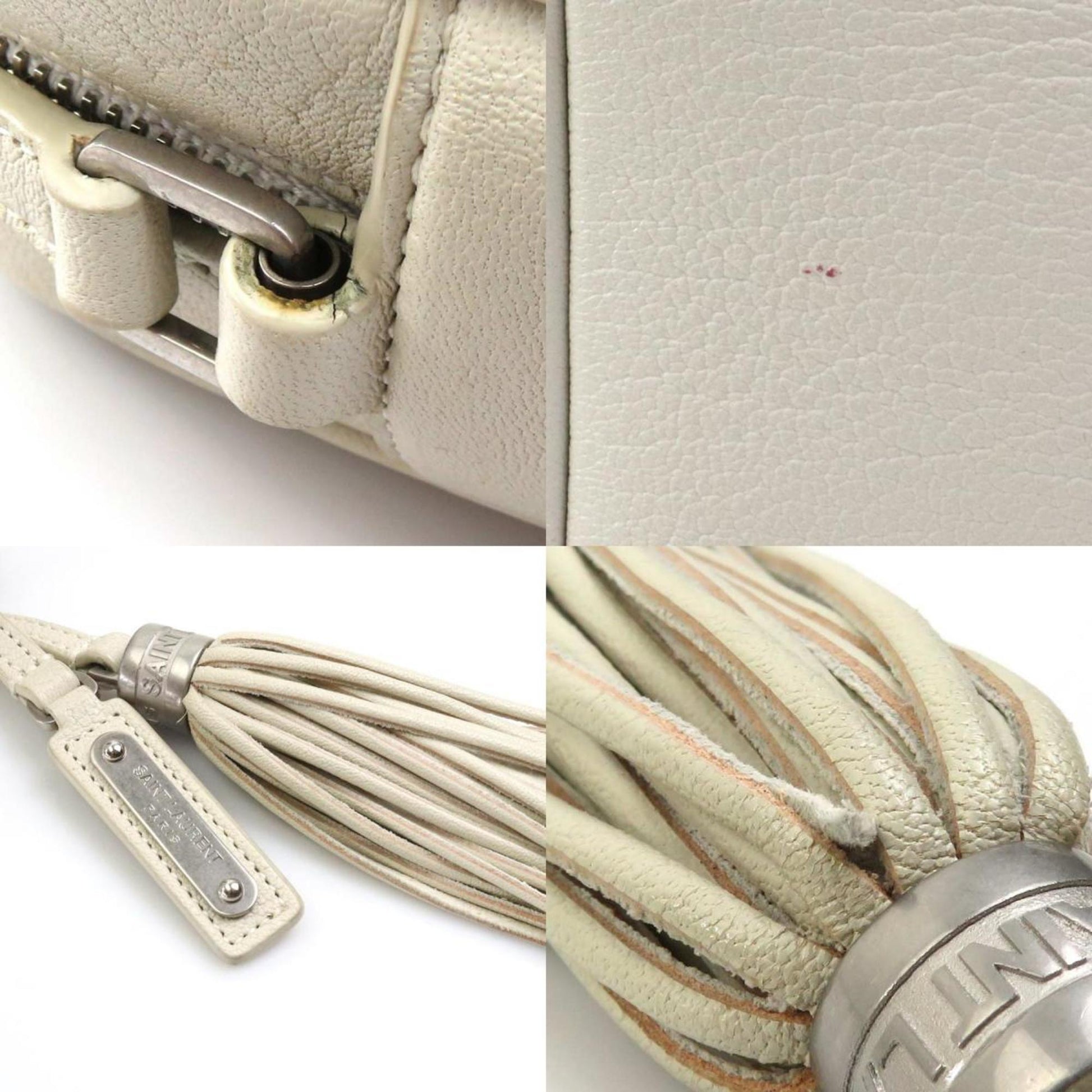 Brand: SAINT LAURENT | Model: Camera | Material: LEATHER | Color: WHITE | Condition: VERY GOOD | Dimensions: Length 21.5 cm × Width 15 cm × Height 5.5 cm | This item is 100% authentic and has been thoroughly inspected. Perfect for fashion enthusiasts who appreciate luxury and quality.