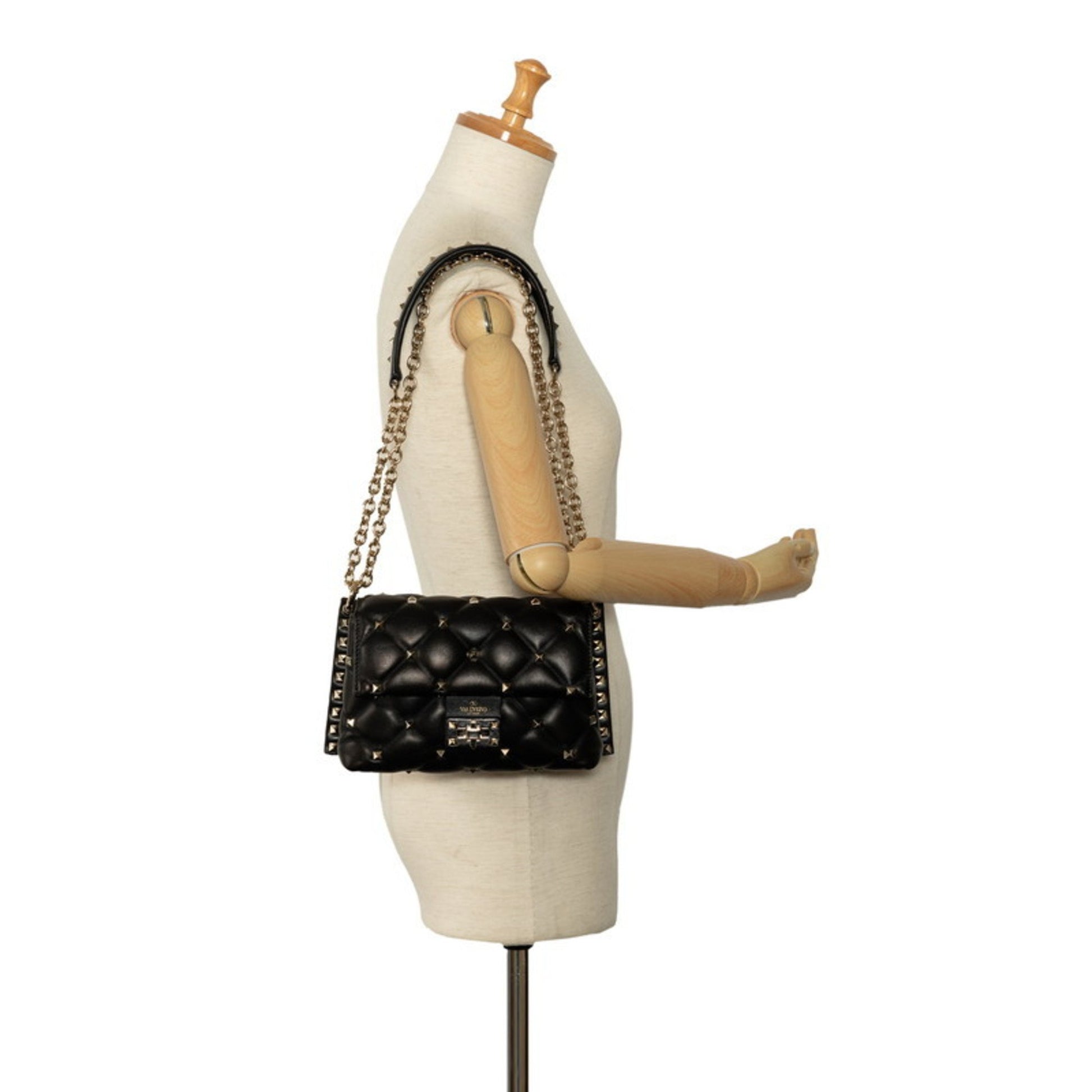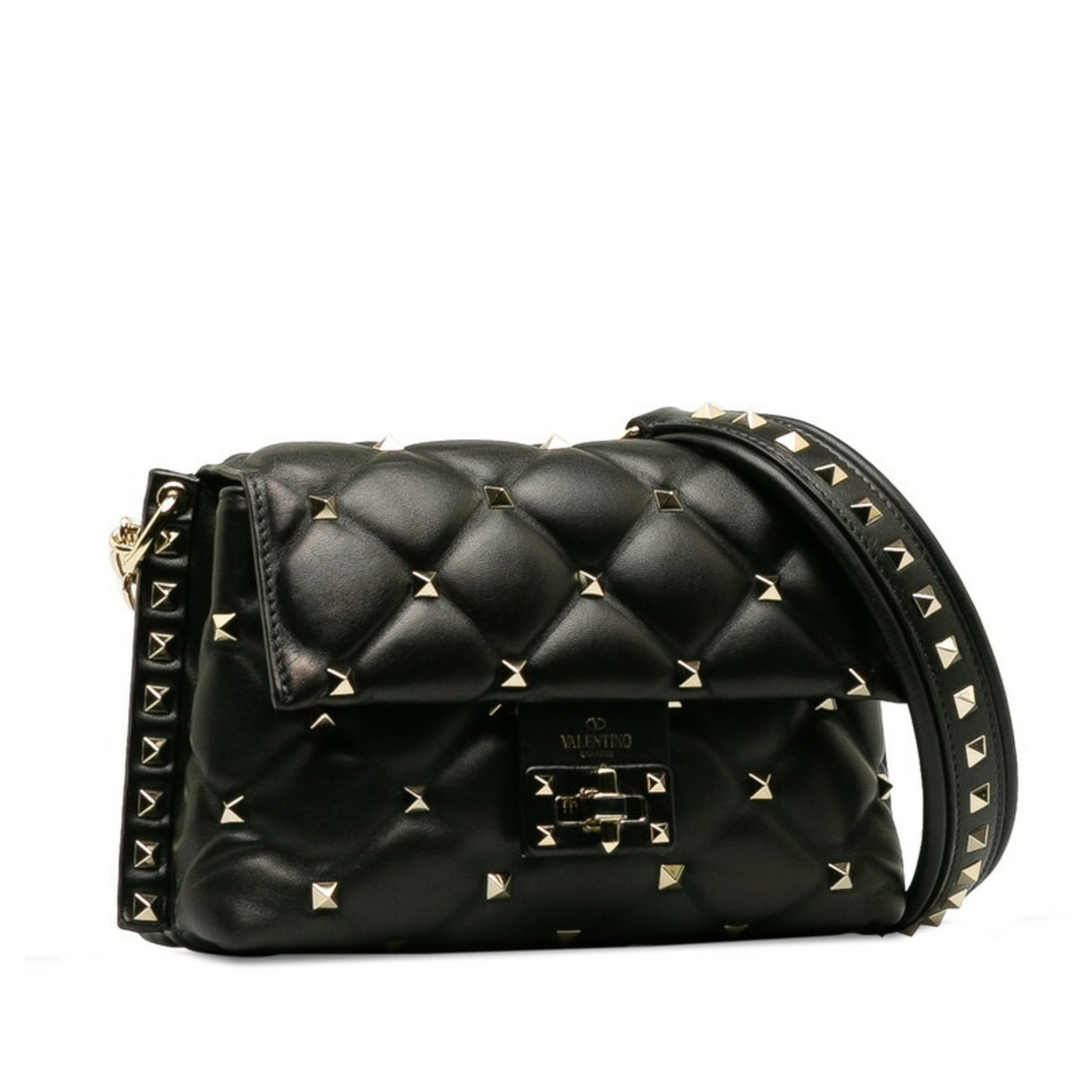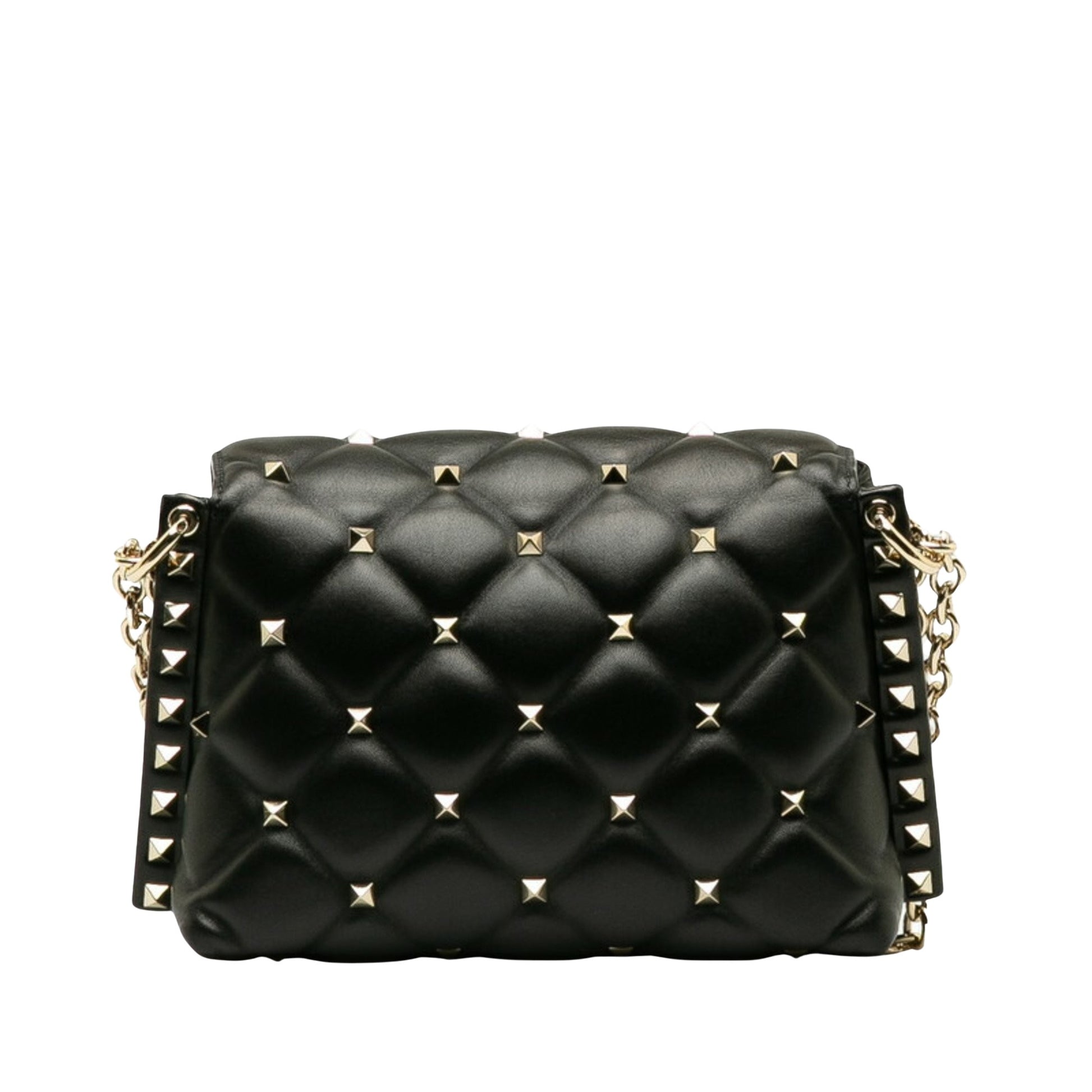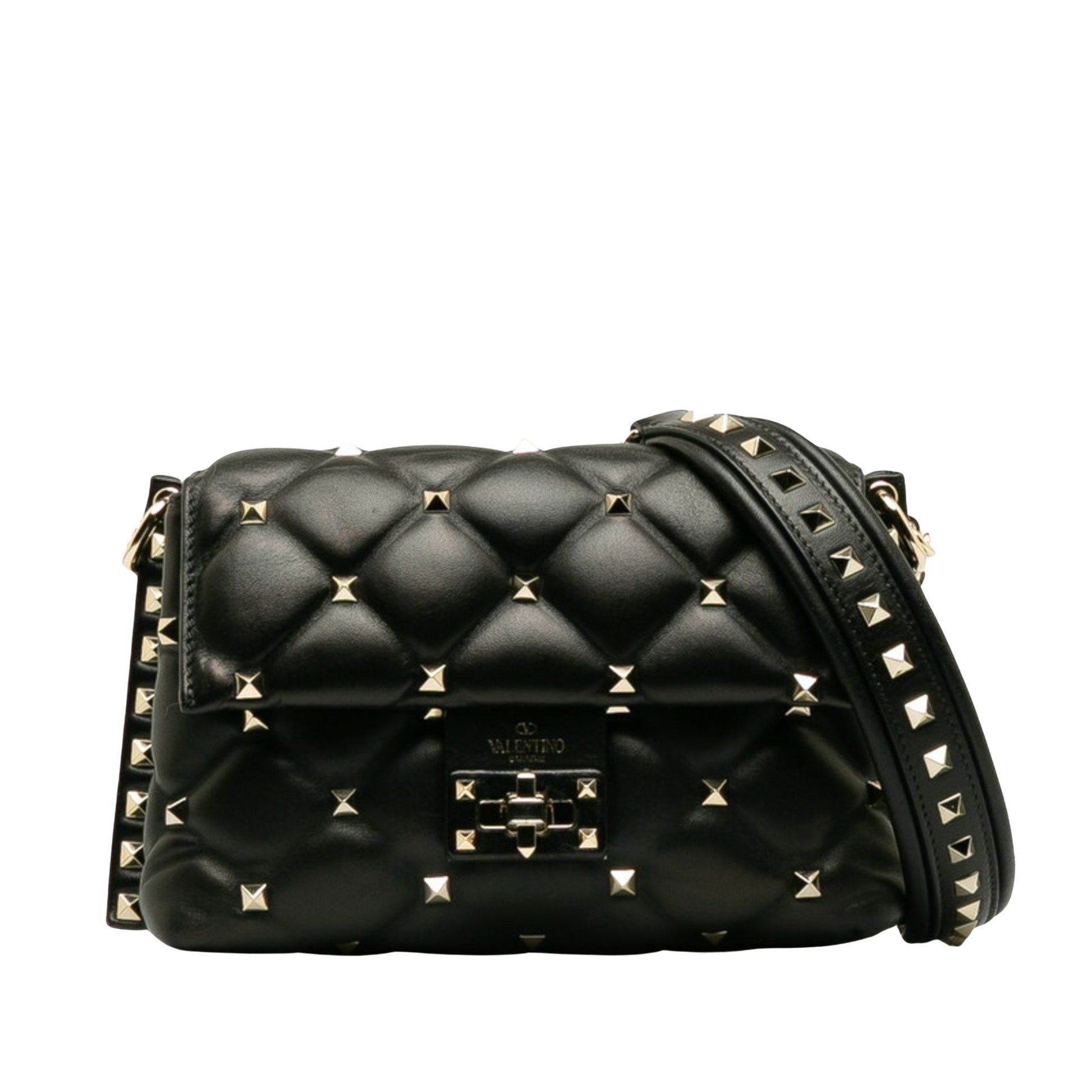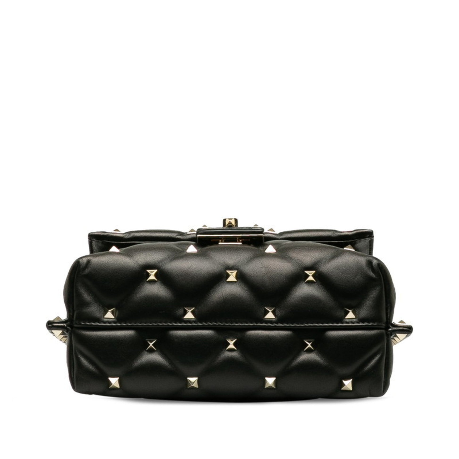 Brand: VALENTINO | Model: Candystud | Material: LEATHER | Color: BLACK | Condition: VERY GOOD | Dimensions: Length 13.5 cm × Width 21.5 cm × Height 8.5 cm | This item is 100% authentic and has been thoroughly inspected. Perfect for fashion enthusiasts who appreciate luxury and quality.